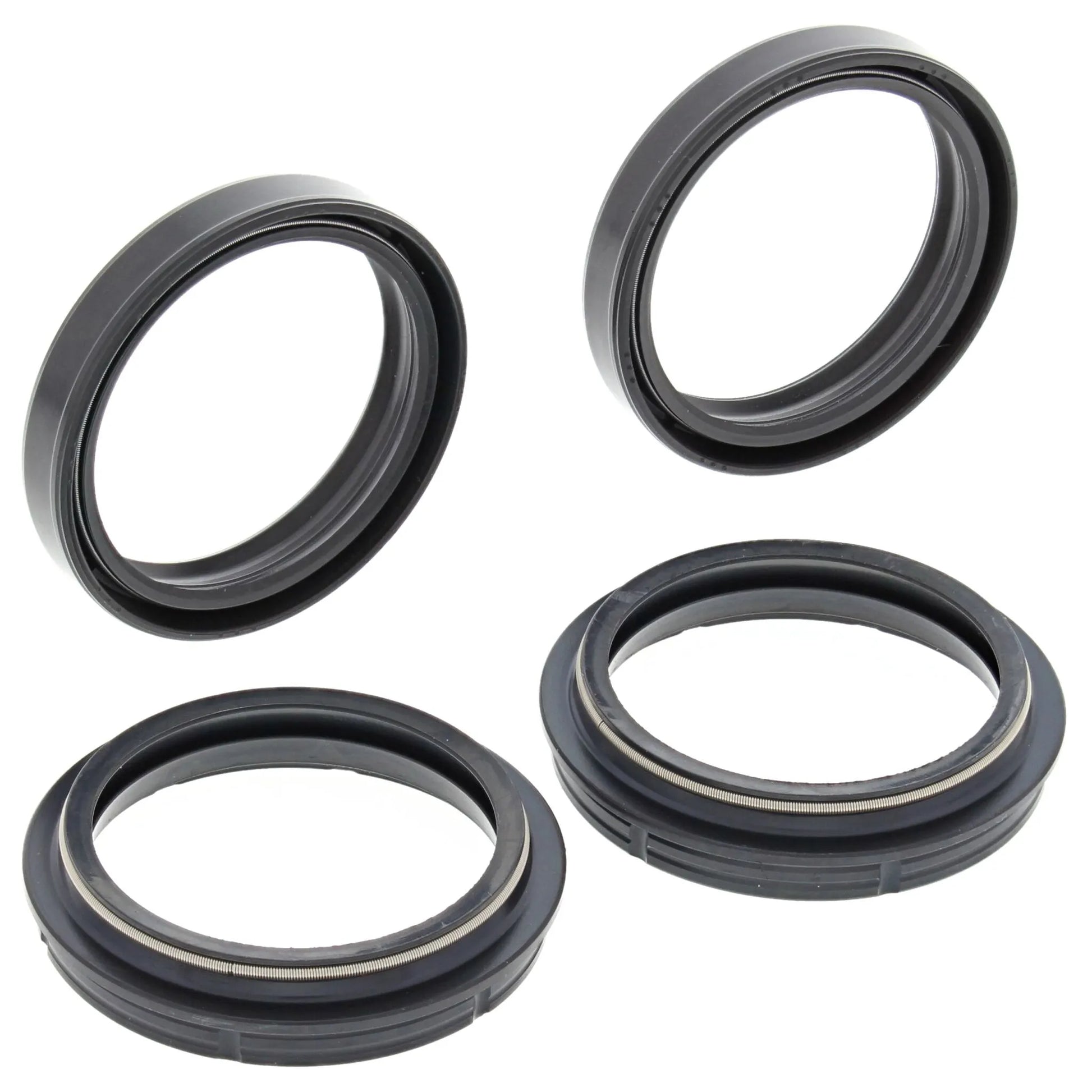 The All Balls Fork Oil and Dust Seal Kit is engineered for superior performance and extended seal life. The innovative seal profile equalizes pressure on each seal lip, minimizing drag and maximizing longevity. Featuring patented MAX-LIFE material, the seals exhibit a coefficient of friction up to three times lower than OEM alternatives, delivering smoother action and reduced wear. The triple-lip design and directional ribs make installation straightforward, ensuring a secure and effective seal. This kit provides a comprehensive solution for maintaining your motorcycle's fork seals.