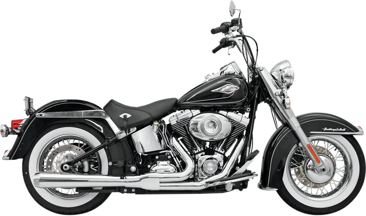 The Bassani Road Rage 2:1 exhaust system features stepped headers that merge into a megaphone muffler, creating a dynamic exhaust note and optimized gas flow. The 1-3/4" headpipe steps up to 1-7/8" into the collector, ensuring increased exhaust velocity and enhanced engine performance. Its 4" muffler body is capped with a billet end cap for a stylish finish. This system is built to last, featuring durable steel and aluminum construction and a striking chrome finish. The included removable spiral-core louvered baffle allows you to fine-tune your exhaust sound to your preference. Heat shields are also included for added protection and comfort.