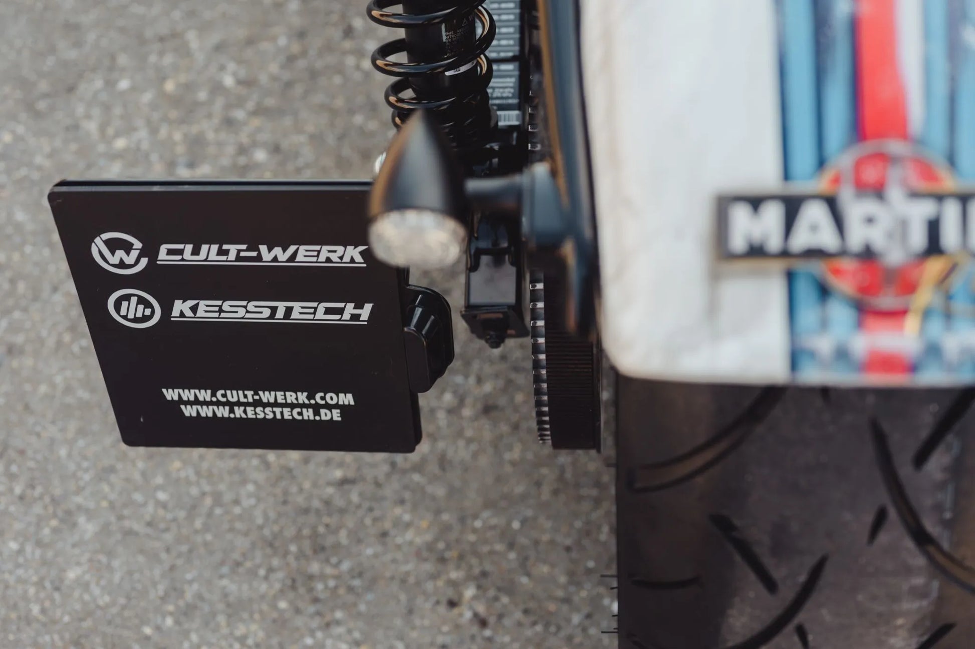 The Cult Werk License Plate Holder is engineered to be the shortest on the market, providing a visually appealing, custom look for your motorcycle. Constructed from high-quality steel, the holder is CNC lasered for precision and then powder-coated in black for a sleek and durable finish. Its short mounting foot enhances the overall aesthetic, setting it apart from other license plate holders. Installation is straightforward, attaching to the lower shock absorber fastening screw. This license plate holder is a perfect upgrade for enthusiasts looking to enhance their bike's appearance while adhering to legal requirements.