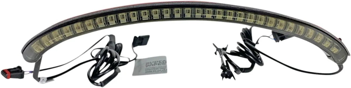 The Custom Dynamics Integrated LED Taillight offers a modern and streamlined look while significantly improving visibility. Featuring 30 super-bright LEDs, this taillight functions as a running light and brake light, ensuring you're seen day or night. The left and right turn signals are seamlessly integrated, splitting the taillight bar with 15 red LEDs per side for clear and unmistakable signaling. This integrated design not only cleans up the rear of your bike but also provides enhanced safety on the road. Easy to install with plug-and-play connectivity and automotive-grade double-sided tape, this taillight offers a hassle-free upgrade that delivers both style and performance.