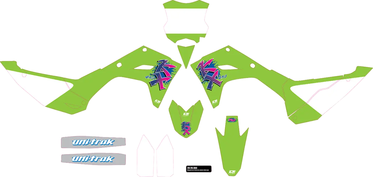 - Complete graphics kit transforms your Kawasaki KX with a fresh, aggressive look.