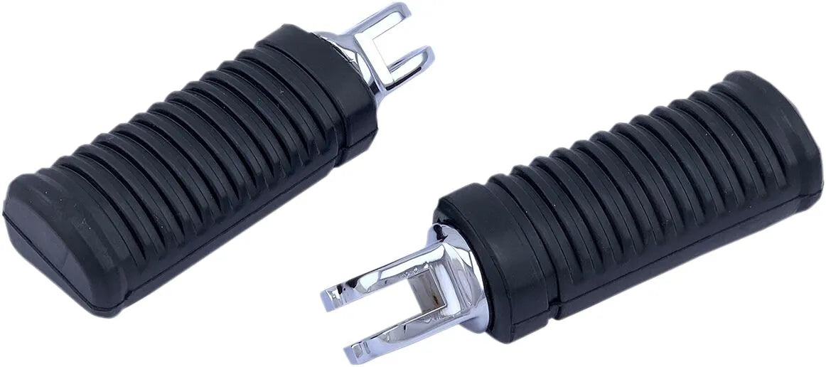 The Drag Specialties FML Foot Pegs are designed for the driver position, providing superior grip and comfort with their durable rubber sleeves. The combination of chrome and black finish offers a sleek, custom look that complements any motorcycle. Constructed from high-quality materials, these foot pegs are built to withstand the rigors of the road while adding a touch of style to your ride. Easy to install and offering a significant upgrade over stock pegs, these folding foot pegs enhance both the aesthetics and functionality of your motorcycle. The folding design adds an extra layer of safety and convenience.