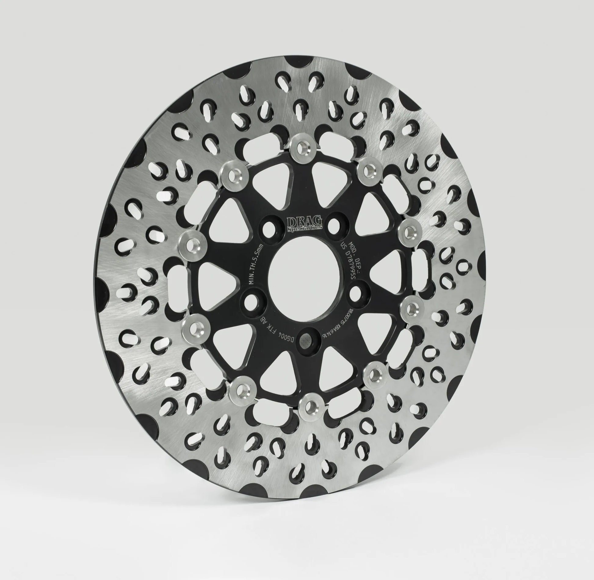 The Drag Specialties FTK Series brake rotor is engineered for maximum resistance to fade and warp, even under extreme heat and mechanical stresses. The fully floating design, featuring stainless steel rotor bobbins, allows for efficient rotor "float," preventing distortion and ensuring consistent braking performance. The outer brake ring incorporates machined and painted rotor slots that improve brake performance and promote rapid cooling. Manufactured in Europe to ISO/TS 16949 certified standards, this rotor meets or exceeds OEM specifications, guaranteeing reliability and durability. The bi-lateral cross-textured grinding process on the stainless steel outer rings keeps rotor runout to a minimum of just 0.01mm, ensuring smooth and consistent operation. With its original style and focus on performance, the FTK Series brake rotor is a perfect upgrade for discerning riders and custom builders.