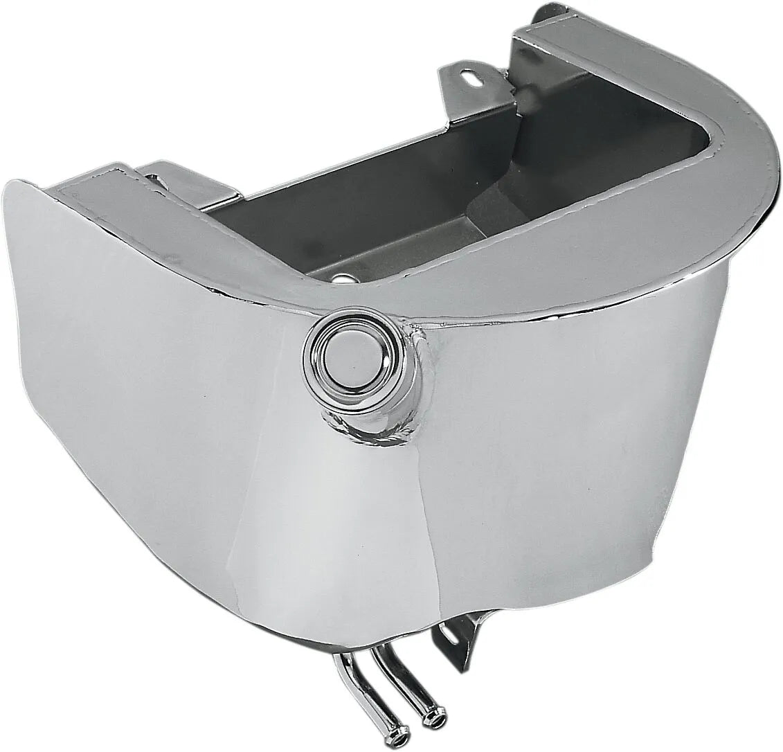 The Drag Specialties Winged Oil Tank features a distinctive winged design with a chrome finish, adding a touch of elegance to your motorcycle. This side-fill oil tank is designed to close the gap between the tank and frame, creating a seamless and integrated look. Constructed for durability and style, it's an ideal replacement or upgrade for your existing oil tank. The chrome finish ensures long-lasting shine and resistance to the elements, providing both aesthetic and functional benefits. The integrated filler cap and drain plug simplify maintenance, making oil changes more convenient. With a capacity of approximately 3.0 quarts, this oil tank provides ample oil storage for optimal engine performance. Whether you're a seasoned rider or a motorcycle enthusiast, this oil tank offers a blend of style, durability, and practicality.