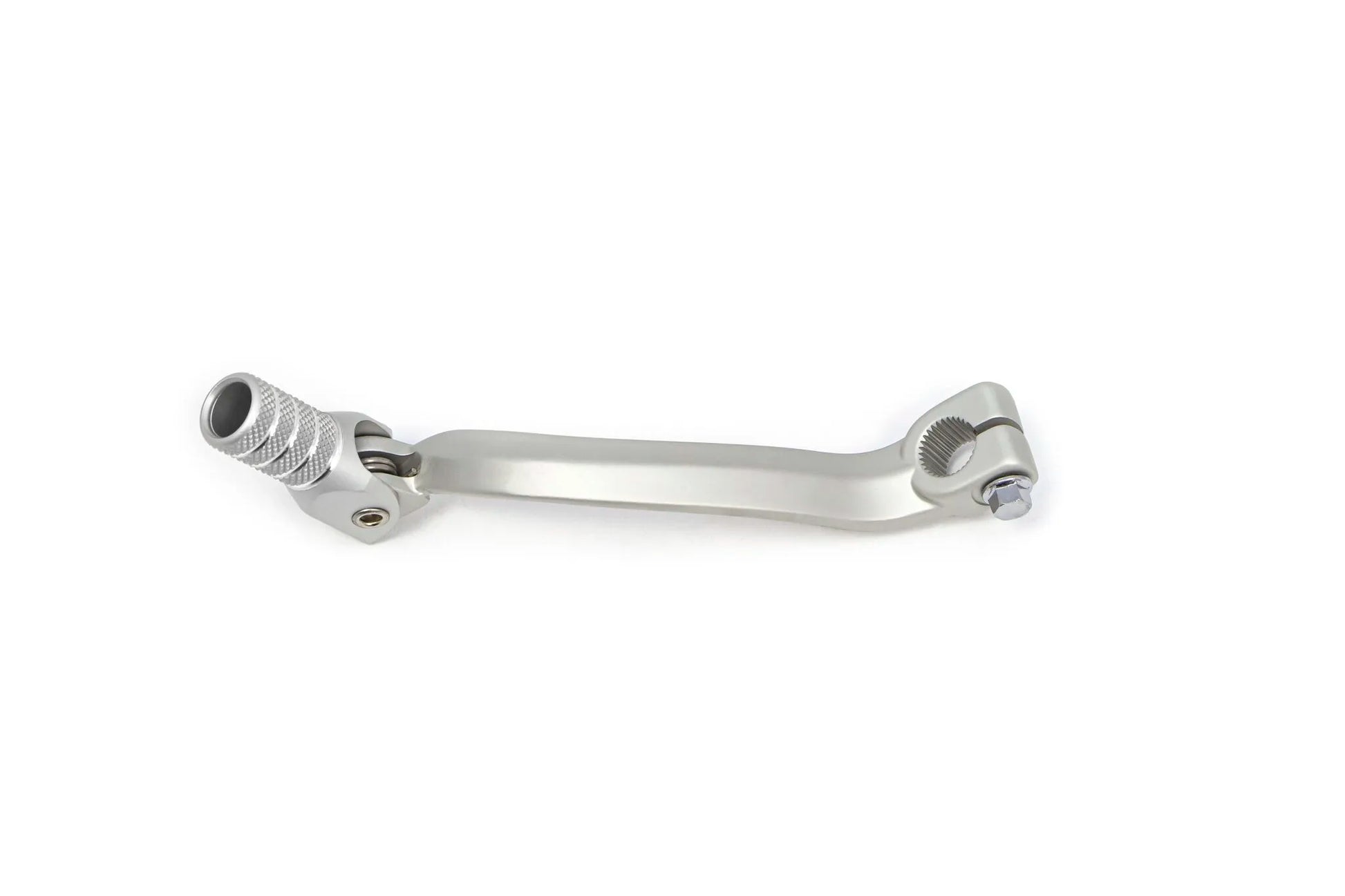The Emgo Gear Shift Lever offers a direct replacement for your original equipment. This lever features robust aluminum construction, ensuring longevity and resistance to wear and tear. The folding shift peg style adds an extra layer of protection in the event of a fall, reducing the risk of damage. Easy to install and designed to meet or exceed OEM specifications, this gear shift lever delivers consistent performance and seamless integration with your motorcycle's existing components. Experience improved shifting precision and control with this essential upgrade. This gear shift includes the shift lever and boot.