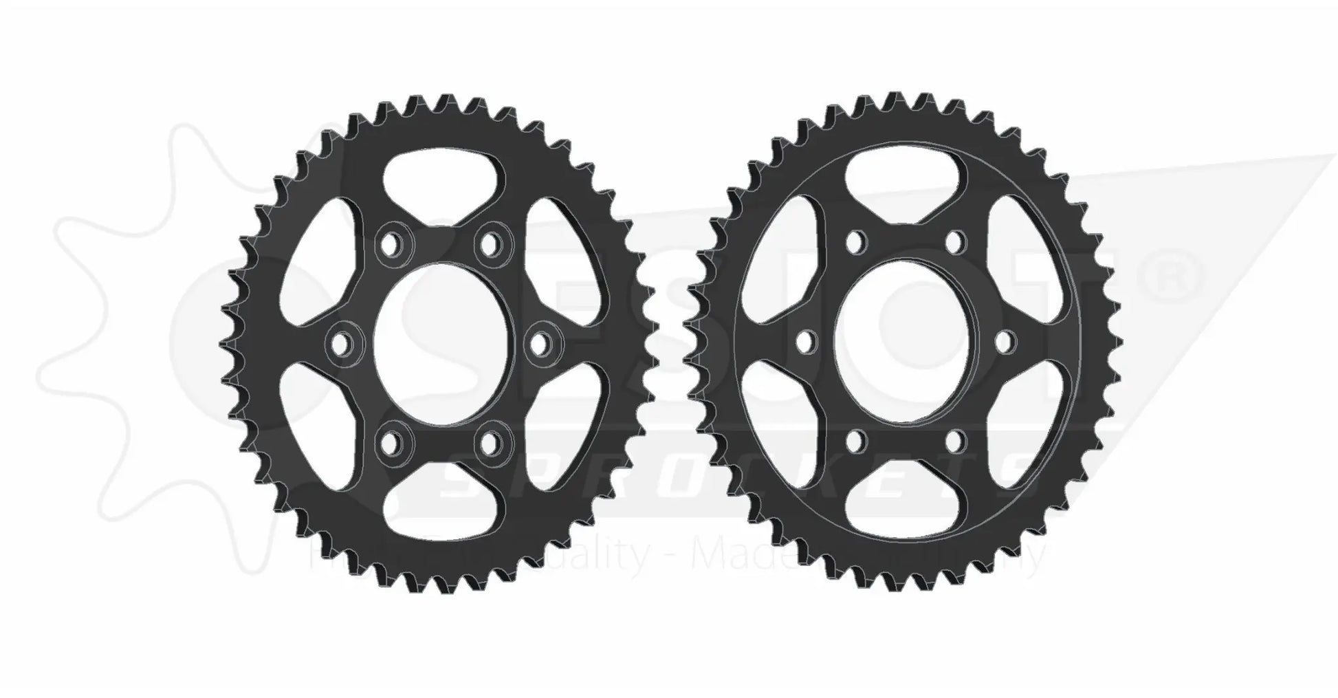 Esjot sprockets are engineered for superior performance, utilizing a specialized steel and coating for enhanced wear resistance. The precise toothing, achieved through the advanced Diamond Cut 2.0 process, guarantees optimal chain engagement and smooth power delivery. With concentricity and axial run-out tolerances of less than 0.1 mm, this sprocket minimizes vibration and maximizes efficiency. The special surface treatment further enhances the sprocket's resistance to corrosion and wear, making it ideal for demanding riding conditions. Upgrade to Esjot and experience unmatched reliability and longevity for your motorcycle's drivetrain. Fits perfectly as a standard rear 530 sprocket. High strength steel ensures long life under harsh conditions.