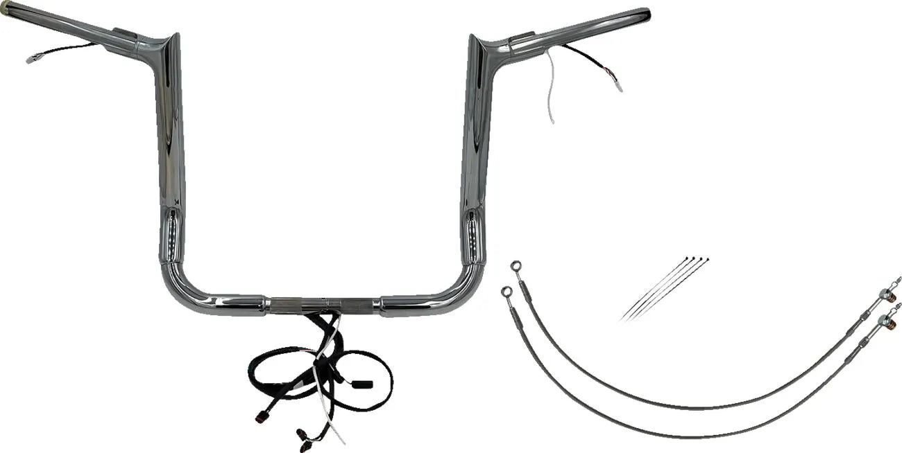 The Fat Baggers Inc. Ez Install Handlebar Kit revolutionizes handlebar installation. With pre-installed wiring, including a throttle-by-wire sensor, you can say goodbye to struggling with internal wiring. Simply remove the bars from the box and plug them into your motorcycle. The non-welded top corner, machined from billet steel, features a smooth internal wire cavity to prevent damage to the wiring. An adjustable 1-1/2" collar next to the handlebar controls offers a custom finished look. These handlebars are CNC mandrel bent from 1-1/2" diameter x 0.095" wall heavy-duty steel tubing for superior strength and durability. The innovative bolt-together, 2-piece design reduces shelf space. Proudly made in the U.S.A., these handlebars are designed to accept OEM heated grips for added comfort in colder conditions.