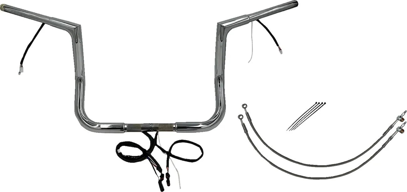 Upgrade your motorcycle with the Fat Baggers Inc. Ez Install Wired 1-1/4" Flat Top Handlebar Kit. These handlebars offer a blend of style, comfort, and easy installation, making them a perfect choice for riders looking to enhance their bike's aesthetics and riding experience.
