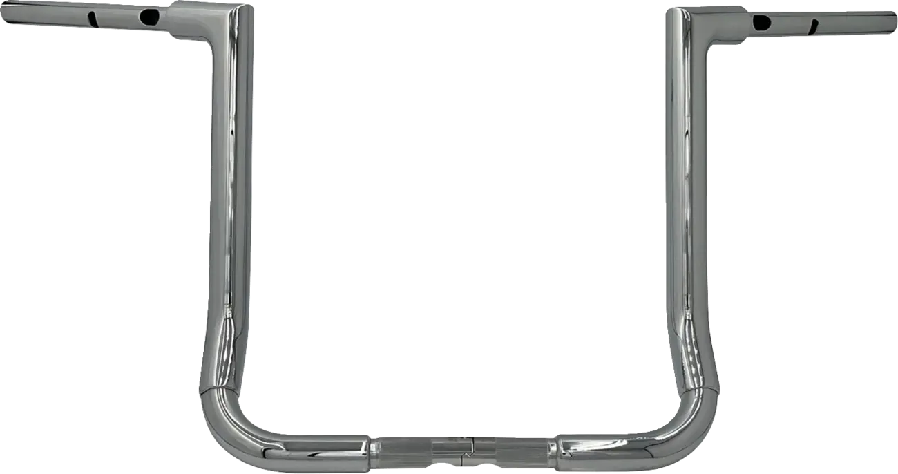 The Fat Baggers Inc. Flat Top Handlebar is CNC mandrel-bent from heavy-duty 1-1/2" diameter steel tubing with a .095" wall, ensuring exceptional strength and durability. The unique bolt-together, two-piece design not only saves on shelf space but also simplifies shipping. With its EZ install design, you can say goodbye to wrestling with internal wiring – install your wiring in minutes! The adjustable 1-1/2" collar next to handlebar controls provides a custom finished look. This handlebar features a chrome finish, a 1" clamping diameter and controls diameter, and is knurled and notched for TBW (Throttle-By-Wire) applications. It accepts OEM heated grips for added comfort in cooler conditions. Proudly made in the USA, this handlebar offers a perfect blend of style, performance, and easy installation.