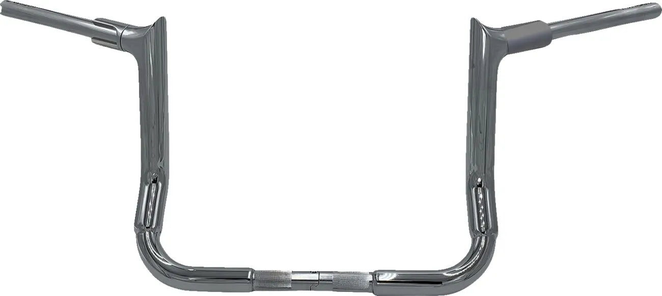 Crafted from heavy-duty 1-1/2" diameter steel tubing, this handlebar is CNC mandrel-bent for superior strength and precision. The innovative bolt-together, two-piece design not only saves shelf space but also simplifies shipping and installation. The adjustable 1-1/2" collar provides a seamless finish next to the handlebar controls, enhancing the overall appearance of your bike. The EZ install feature eliminates the struggle with internal wiring, allowing for a quick and hassle-free setup. The bar's squared lower bends include additional slots to further ease wire routing, while the knurled and notched design ensures compatibility with TBW (Throttle-By-Wire) applications. Compatible with OEM heated grips, this Fat Baggers Inc. handlebar combines style, functionality, and ease of use. Measuring 36" wide with a 9" pullback and 12" rise, these ape hanger style handlebars offer excellent control and rider comfort.Features & highlights