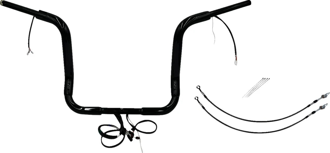 The Fat Baggers Inc. EZ Install Wired Handlebar Kit revolutionizes handlebar installation. These handlebars come pre-wired for your handlebar controls, including a pre-installed throttle-by-wire sensor. Forget struggling with internal wiring – simply remove the bars from the box and plug them into your motorcycle. The non-welded top corner, machined from billet steel, features a smooth internal wire cavity that protects your wiring. The adjustable 1-1/2" collar next to the handlebar controls provides a custom, finished appearance. CNC mandrel bending ensures consistent 1-1/2" diameter and .095" wall thickness for superior strength. The innovative bolt-together, two-piece design saves shelf space while maintaining rigidity. Proudly made in the U.S.A., these handlebars are built for performance and style. They also accept OEM heated grips for added comfort.