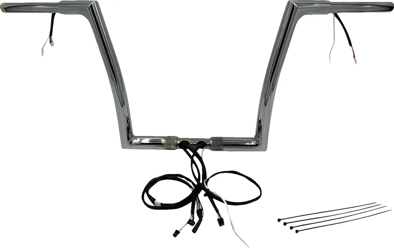 The Fat Baggers Inc. Ez Install Wired Handlebar Kit takes the frustration out of upgrading your handlebars. Pre-wired for your handlebar controls, including a throttle-by-wire sensor, these bars are ready to plug directly into your motorcycle. The innovative design features a non-welded top corner, precision-machined from billet steel, ensuring a smooth internal wire cavity that protects your wiring from damage. CNC mandrel bending from heavy-duty 1-1/4" diameter x .120" wall steel tubing guarantees strength and durability. The bolt-together, two-piece design saves shelf space and simplifies handling. Proudly made in the U.S.A., these handlebars accept OEM heated grips, offering added comfort during colder rides.