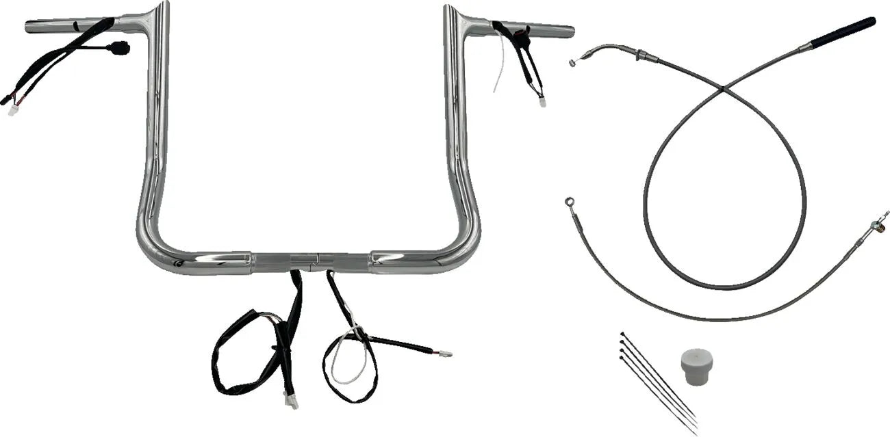 The Fat Baggers Inc. handlebar features a bolt-together, two-piece design, saving shelf space and simplifying shipping. Constructed from 1-1/4" diameter x 0.120" wall heavy-duty steel tubing, CNC mandrel-bent for precision, these handlebars offer exceptional strength and durability. The innovative EZ install design streamlines internal wiring, cutting installation time significantly. The billet machined top includes a large internal machined radius, facilitating effortless wire pulling through the non-welded top corner. Featuring a "squared" lower bend with additional slots for optimized wire routing, these handlebars are knurled and notched for throttle-by-wire (TBW) applications and are compatible with OEM heated grips. Finished in chrome for a brilliant look.