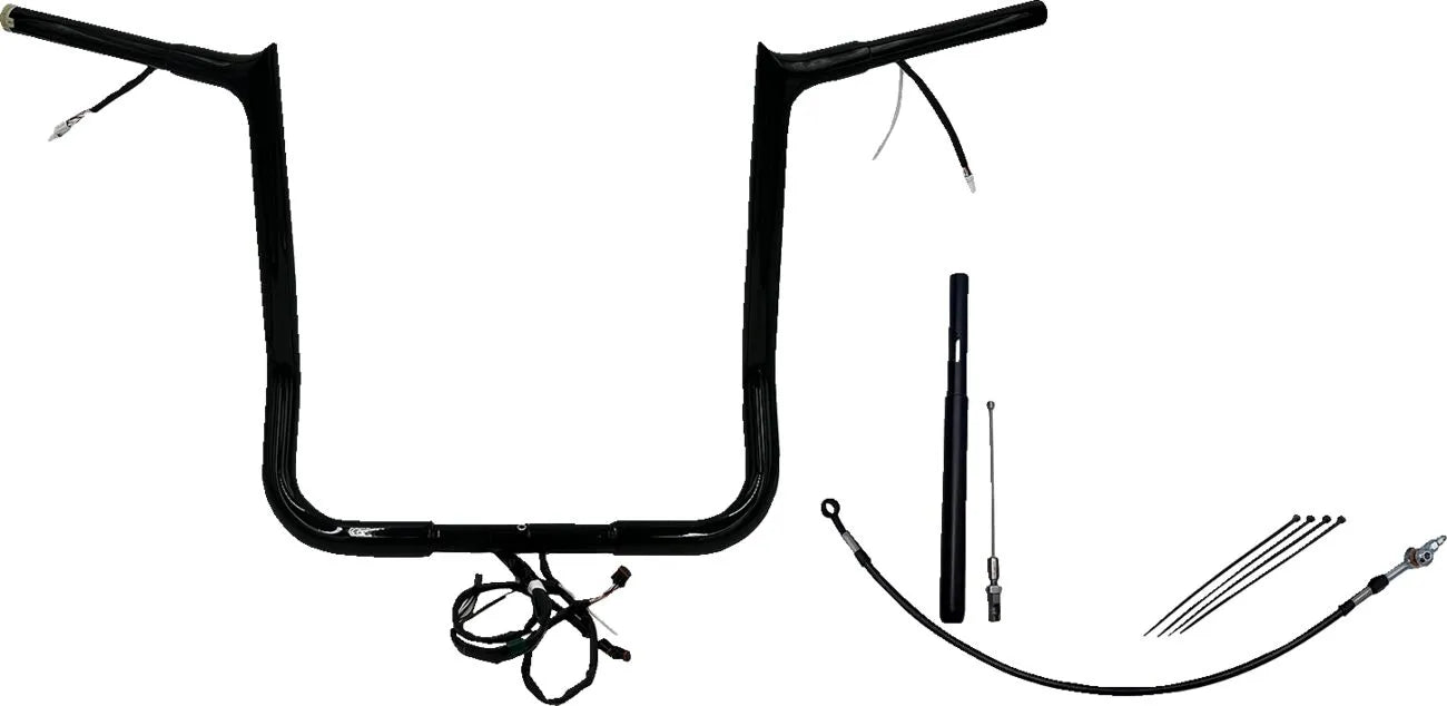 The Fat Baggers Inc. Ez Install Handlebar Kit revolutionizes handlebar installation. Pre-wired for your handlebar controls, including a throttle-by-wire sensor, these bars allow you to plug directly into your motorcycle, eliminating the hassle of internal wiring. The non-welded top corner, machined from billet steel, features a smooth internal wire cavity to prevent damage to your wiring. CNC mandrel bent from robust 1-1/4" diameter x .120" wall heavy tube, these bolt-together, 2-piece handlebars save valuable shelf space. These handlebars not only extend existing lines and cables but also accept OEM heated grips for added comfort. All '21-'23 kits include black brake lines and black clutch extensions for a sleek, coordinated look. Upgrade to Fat Baggers Inc. handlebars and experience the difference.