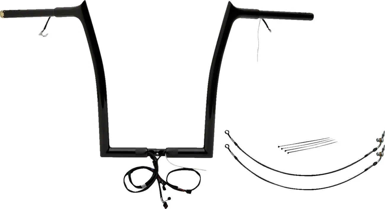 The Fat Baggers Inc. Ez Install Wired Handlebar Kit revolutionizes handlebar installation. This innovative kit comes pre-wired for your handlebar controls, including a pre-installed throttle-by-wire sensor, eliminating the hassle of intricate internal wiring. Simply remove the bars from the box and plug them directly into your motorcycle. The non-welded top corner, meticulously machined from billet steel, features a smooth internal wire cavity, preventing any damage to the internal wiring during installation or use. Each handlebar is CNC mandrel bent from robust 1-1/4" diameter x .120" wall heavy-duty steel tubing. The bolt-together, 2-piece design optimizes shelf space and simplifies handling. Proudly made in the U.S.A. These handlebars are designed to extend, not replace, your existing lines and cables. Compatible with OEM heated grips; however, a heated grip extension is sold separately. Kits for '21-'23 models include black brake lines and black clutch extensions for a cohesive look.