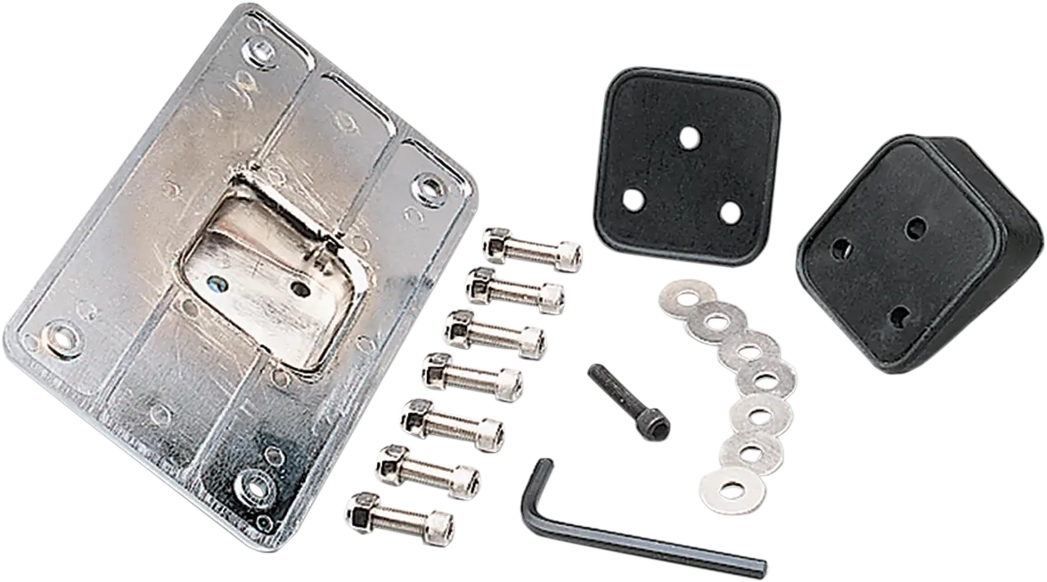 The Kuryakyn Laydown License Plate Holder is designed to replace the factory 3-bolt bracket, providing a cleaner, more modern aesthetic. By tilting the license plate back, this holder creates a custom look that sets your motorcycle apart. The kit includes a rubber wedge, giving you the flexibility to adjust the angle of the plate to your preference. It is compatible with most standard 4" x 7" license plates. Installation is straightforward, making it a simple yet effective upgrade to enhance the overall appearance of your motorcycle. This laydown license plate frame offers a durable and stylish solution for mounting your license plate.Features & highlights