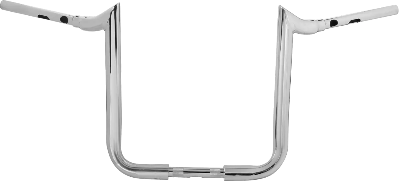 The La Choppers Grande Prime Ape Hanger handlebar features a mitered tip and a traditional two-bend bottom, creating a distinctive and eye-catching appearance. The double-wall steel construction ensures superior strength and durability, ready to withstand the demands of the road. These handlebars are designed to accommodate both electronic and cable throttles, offering versatility for various motorcycle models. Internal wiring is a breeze thanks to the pre-drilled design, giving your bike a clean and professional look. Compatible with hydraulic clutch and brake master cylinders, and also accepts H-D OEM heated grips, making these handlebars a great choice for year-round comfort. The chrome finish provides a sleek, custom look that complements any bike. With a 1-1/2" diameter, these bars make a bold statement.