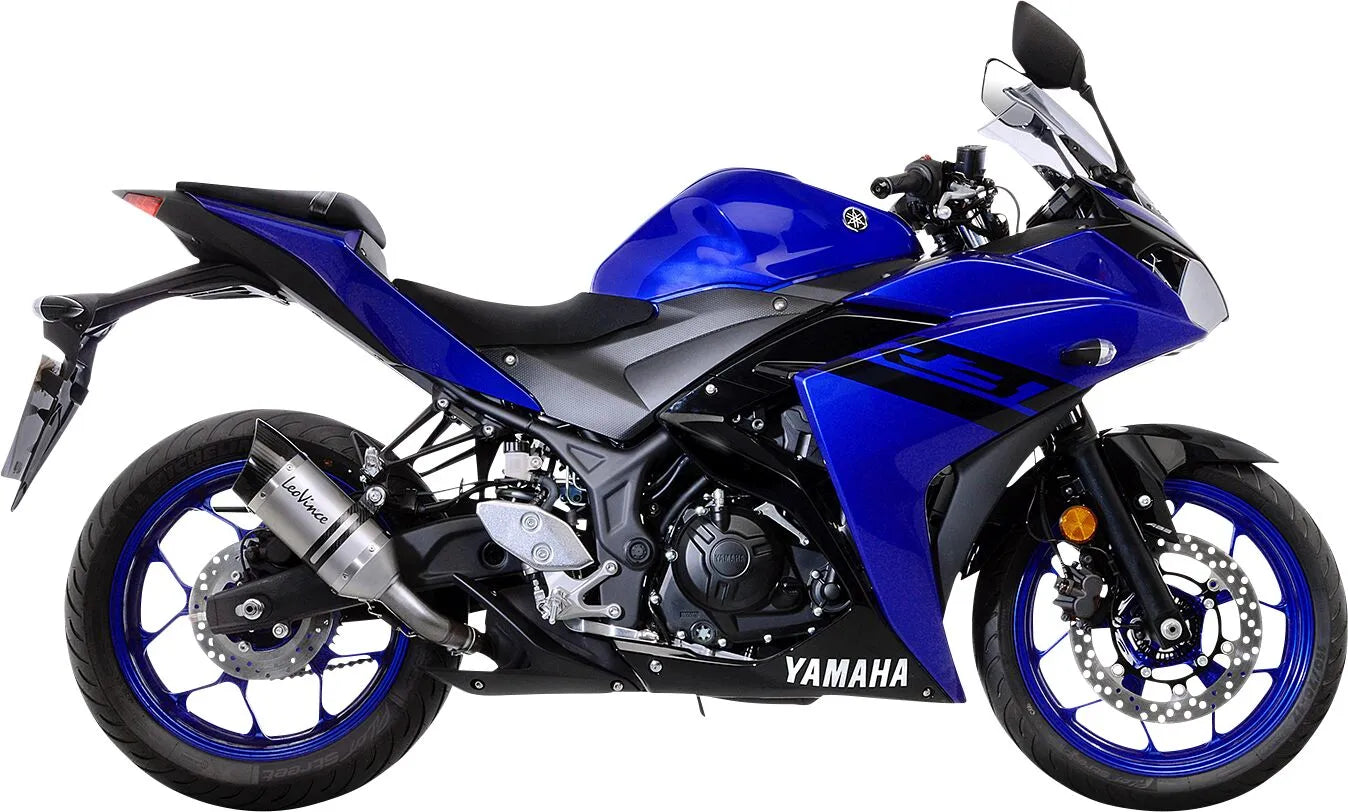 The LV PRO stainless steel boasts an aggressive, race-inspired appearance, highlighted by its distinctive "Shark Cut" end cap. Its compact size accentuates the motorcycle's overall aesthetics. The AISI 304 stainless steel sleeve ensures durability and resistance to corrosion, while the carbon fiber "Shark Cut" end cap adds a touch of modern styling. With high-temperature resistant packing capable of withstanding temperatures up to 1,650 °F, the LV PRO is built to endure demanding riding conditions. The full carbon fastening strap and laser-etched LeoVince logo exemplify the attention to detail in this premium slip-on muffler. Installation is straightforward, allowing you to quickly upgrade your motorcycle's exhaust system. This slip-on provides improved exhaust flow, resulting in increased horsepower and torque.