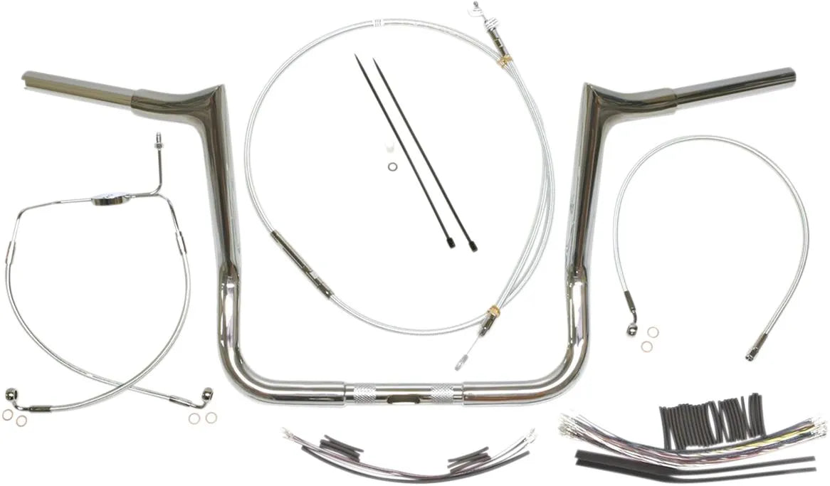 - Complete handlebar kit includes matching braided cables and brake lines.