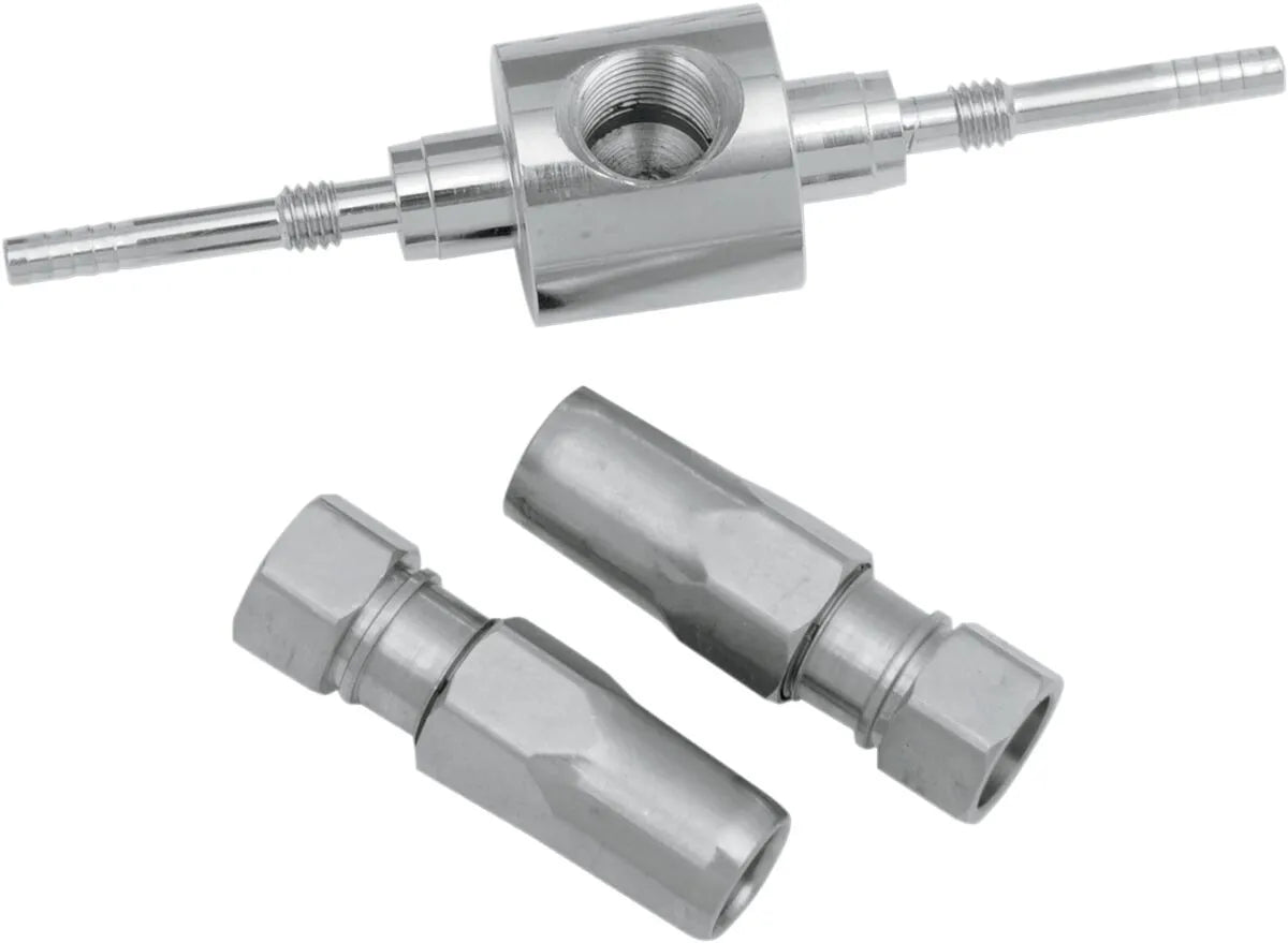 The Magnum Shielding BYO® Junction Block allows you to create a custom brake line setup tailored to your exact specifications. Its robust stainless steel construction ensures durability and resistance to corrosion, offering long-lasting performance. Featuring a chrome finish, this junction block adds a touch of style to your motorcycle's brake system. The 1/8" NPT female fitting connector type allows for easy and secure connections. Designed for rear mounting, it provides a convenient and efficient solution for routing brake lines.