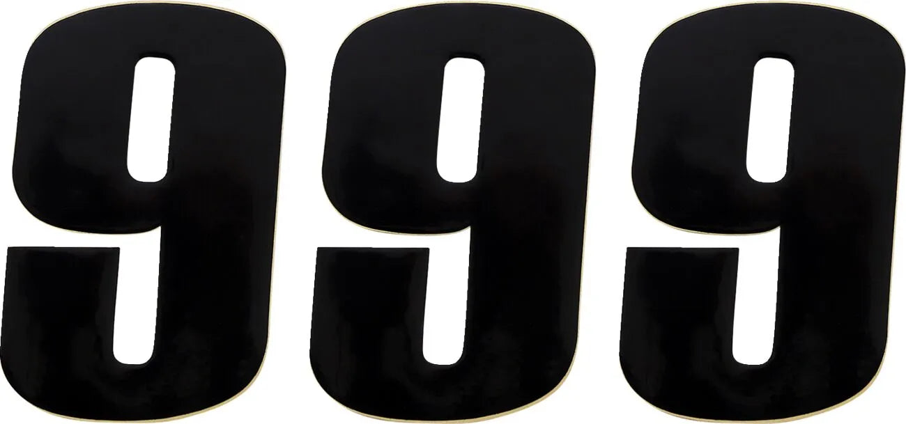 Moose Offroad Vinyl Race Numbers feature a super tacky adhesive that ensures they stay put, even under the most demanding racing conditions. Constructed from 12 mm durable high-gloss vinyl, these numbers not only look great but are also built to last. The 4-1/2" size is ideal for double-digit or three-digit numbers, while the 6" numbers work well for single or double-digit configurations. Whether you're a seasoned racer or just starting out, these race numbers provide a professional touch to your motorcycle. Easy to apply and made to withstand the elements, the Moose Offroad Vinyl Race Numbers are a must-have for any serious racer. This 3-pack of number 9's will get your bike looking fresh.