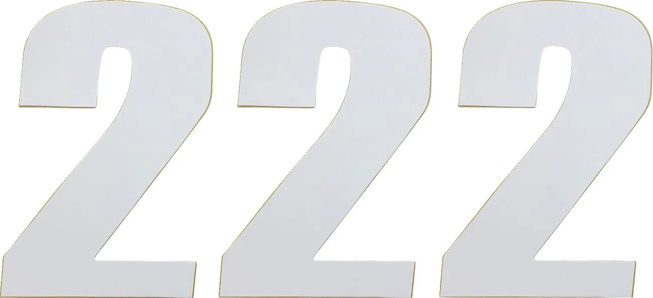 These Moose Offroad Vinyl Race Numbers feature a super tacky adhesive for secure placement on your motorcycle's number plates. Crafted from durable, high-gloss 12 mm vinyl, they are designed to withstand the rigors of off-road racing and maintain a professional appearance. The 6" size is ideal for single or double-digit numbers, providing clear visibility for race officials and spectators alike. These numbers are easy to apply, allowing you to quickly personalize your bike with a professional touch. Available in white, the numbers offer excellent contrast against most backgrounds, ensuring optimal readability. Perfect for racers and enthusiasts looking for a reliable and visually appealing solution for their motorcycle's number plates.