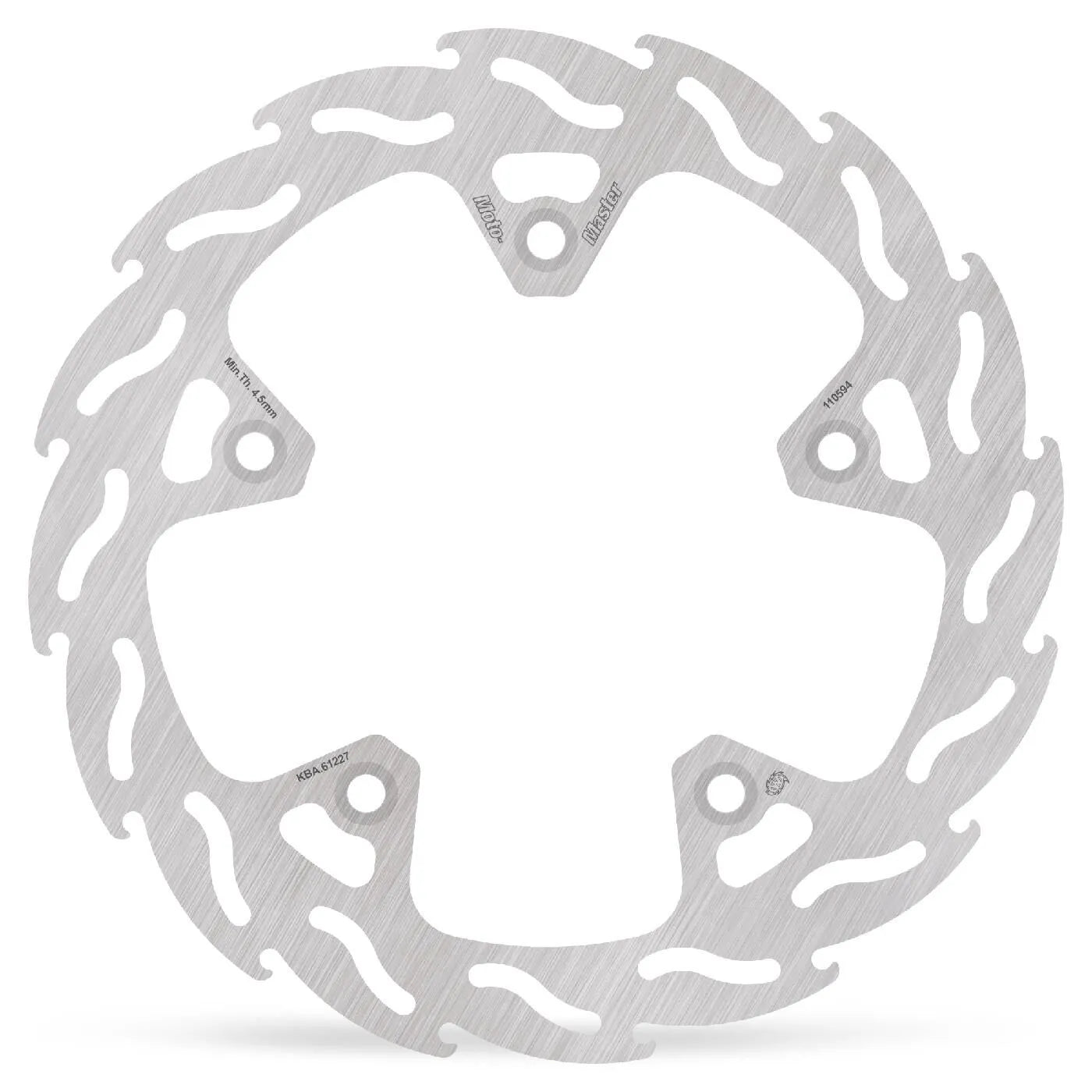 The Moto-Master Flame Series Rotor is designed as a bolt-on performance upgrade for your motorcycle's braking system. Its unique flame design not only looks aggressive but also ensures optimal heat dissipation, preventing brake fade during intense use. The precision double-ground surface provides excellent rider feedback, eliminating any pulsation at the lever for a smooth and consistent braking experience. The rotor's design guarantees equal brake pad contact throughout the entire rotation, resulting in linear and predictable braking action. Crafted from high-quality stainless steel, this one-piece fixed rotor delivers durability and reliability you can trust. Improve your stopping power and overall riding confidence with the Moto-Master Flame Series Rotor.
