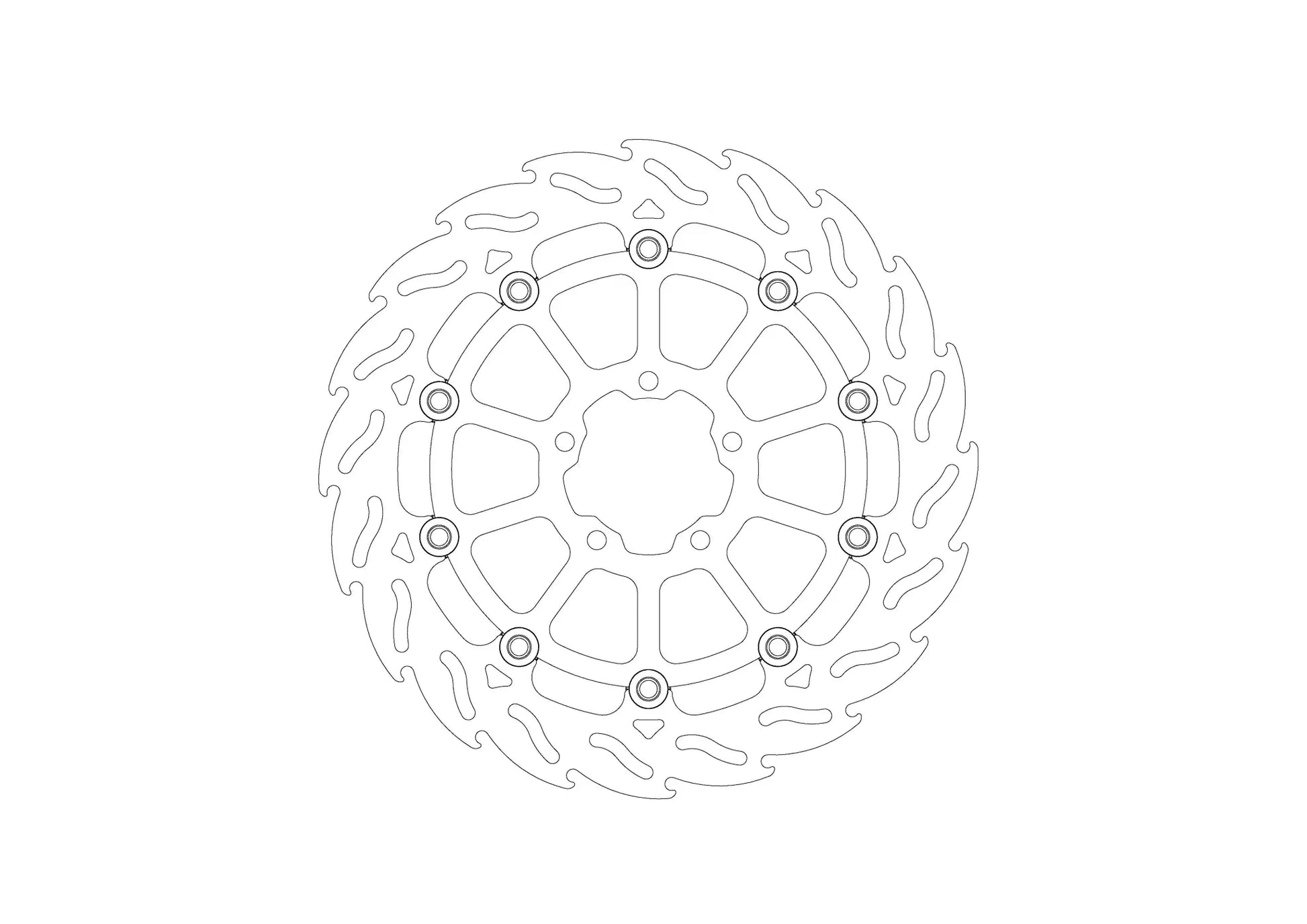 The Moto-Master Flame Series Rotor delivers exceptional braking performance thanks to its innovative design and high-quality materials. The flame design not only looks great but also optimizes heat dissipation and ensures continuous cleaning of the brake pad surface, maximizing braking efficiency. The durable, premium-quality stainless steel outer ring is mounted with lightweight stainless floaters, providing excellent resistance to wear and corrosion. Precision double-ground surfaces ensure equal brake pad contact throughout the entire rotation, eliminating lever pulsation and providing consistent, linear braking action. The CNC-machined 6082 billet aluminum carrier is black anodized, offering a lightweight yet strong foundation for the rotor. This rotor is compatible with any type of brake pad, giving you flexibility in your choice of friction materials. For professional racing applications, a 5.5 mm version is also available.