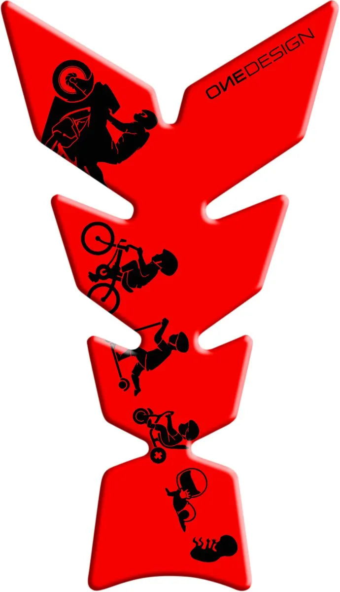 The Onedesign tank pad is molded from high-quality resin and features a self-adhesive backing for easy and secure installation. Its universal design ensures compatibility with a wide range of sport, touring, and road bikes, making it a versatile accessory for any rider. The tank pad not only shields your tank from damage but also adds a touch of personalized style with its sleek black and red finish. Easy to apply and built to last, the Onedesign tank pad is an essential investment for protecting your motorcycle's aesthetics and resale value. Enjoy peace of mind knowing your bike is shielded from daily wear and tear with this premium tank protector. Upgrade your ride with both protection and a custom look.Features & highlights