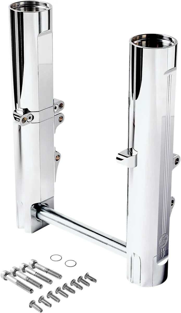 The Performance Machine Phatour 180 Front Wide Tire Kit is engineered to accommodate a 5.5" wide wheel, providing a substantial upgrade to your motorcycle's appearance and road presence. The kit features 49 mm fork lowers, ensuring robust and reliable performance. Designed for single or dual disc applications, this kit offers versatility for various braking setups. Each component is meticulously machined from heat-treated billet aluminum for superior strength and durability. Available in both Contrast Cut and chrome finishes, the Phatour kit allows you to customize your bike to match your personal style. Installation is straightforward, providing a seamless integration with your existing motorcycle frame.