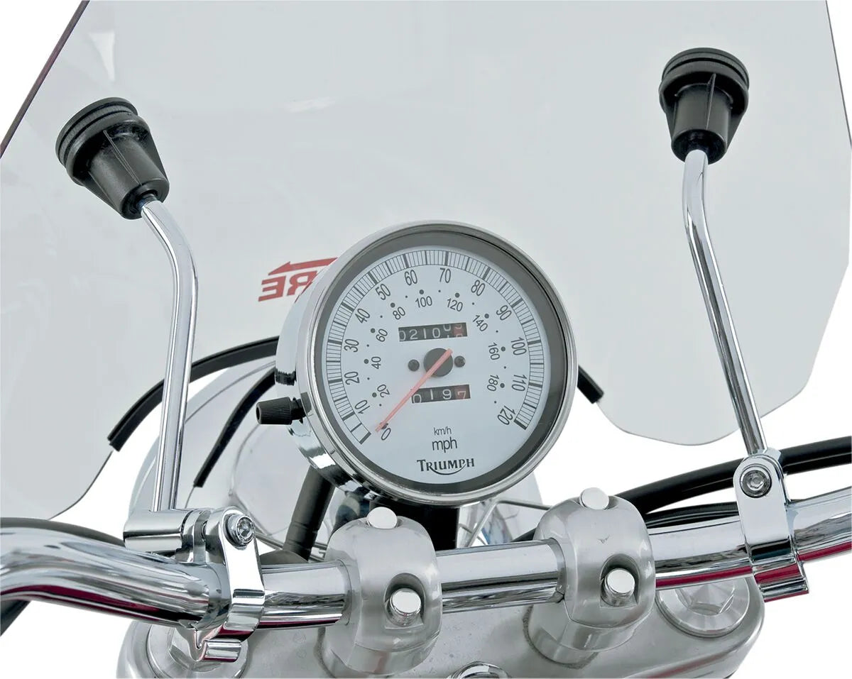 The Spitfire Sport Shield delivers excellent wind protection without compromising your bike's aesthetics. Constructed from durable 1/8" acrylic, this shield is built to last and withstand the rigors of the road. The clear finish offers excellent visibility, while the fully adjustable design ensures a perfect fit on a variety of motorcycles. It mounts and dismounts in seconds, making it easy to customize your ride for any journey. Compatible with both 7/8" and 1" handlebars and designed for round or rectangular headlights, this shield offers broad compatibility. Proudly made in the U.S.A., the Slipstreamer Spitfire is a testament to quality and craftsmanship.