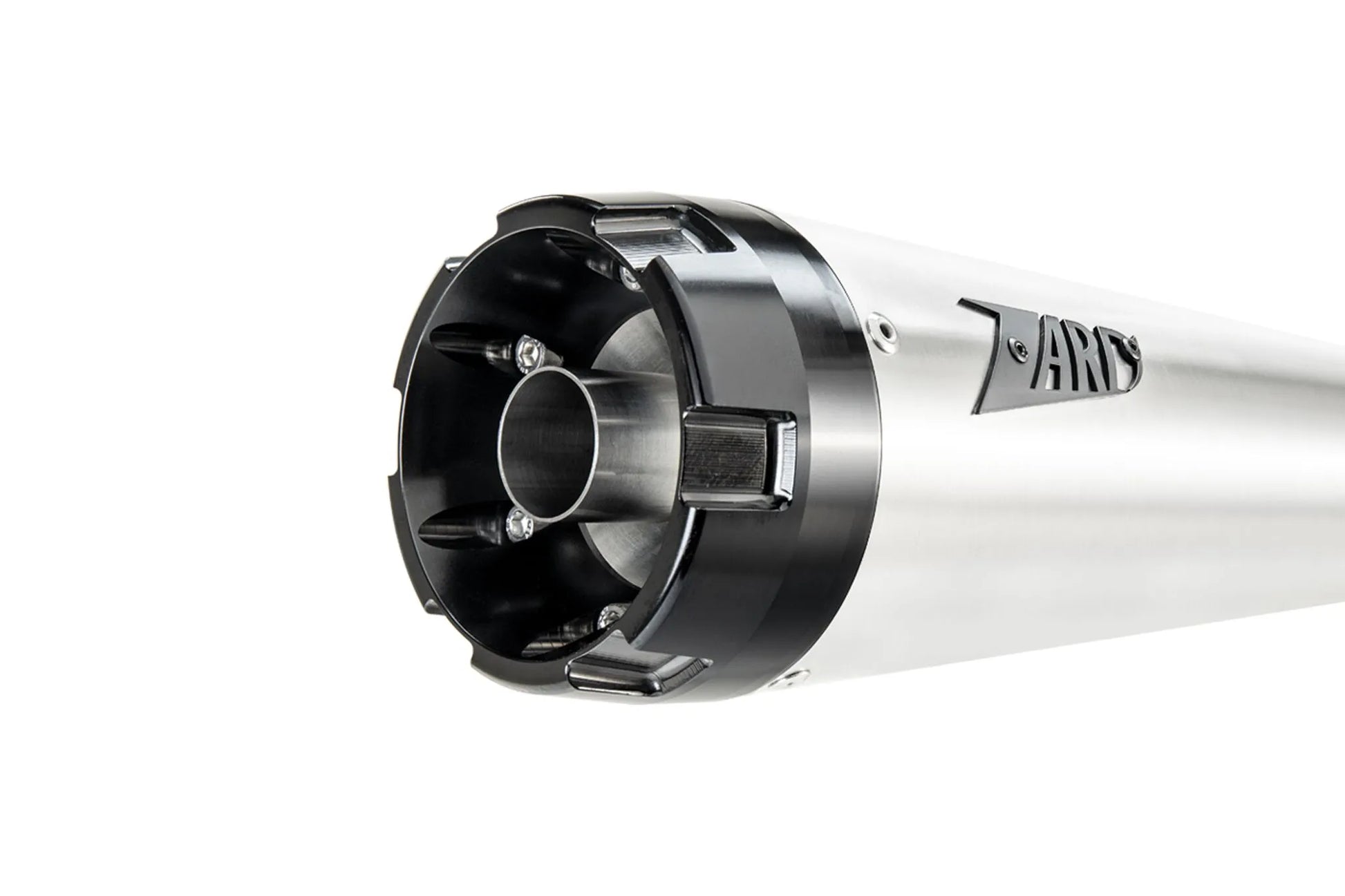 Upgrade your Harley-Davidson Softail with the Zard Full Exhaust System 2:1, meticulously crafted from AISI 304 stainless steel. This complete exhaust system includes headers, a short cone slip-on, and a sleek black anodized aluminum end cap.
