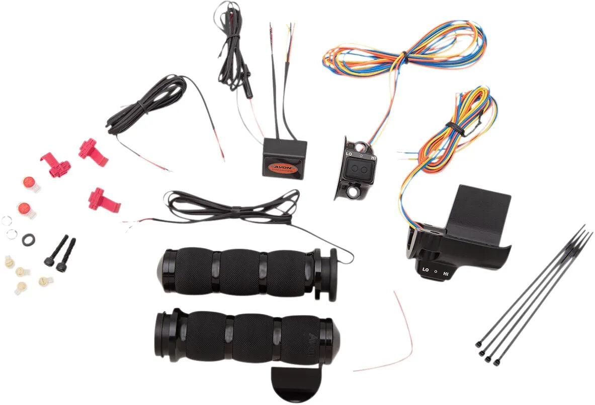 Die beheizbaren Griffe von Avon Grips bieten außergewöhnlichen Komfort und sicheren Halt bei jedem Wetter. Hergestellt in den USA aus hochwertigem Kraton-Gummi, verfügen diese Griffe über eine weiche, geriffelte Oberfläche, die Vibrationen minimiert und den Grip maximiert – für ein sicheres und komfortables Fahrgefühl. Die integrierten Heizelemente spenden Wärme bei kälteren Fahrten und verlängern so Ihre Motorradsaison. Abgerundet wird das Design durch präzisionsgefertigte Endkappen und Hülsen aus 6061er Billet-Aluminium, die den Griffen Langlebigkeit und ein stilvolles Aussehen verleihen. Die beheizbaren Griffe von Avon Grips sind einfach zu montieren und mit den meisten Motorrädern mit 1-Zoll-Lenker kompatibel. Sie sind das perfekte Upgrade für mehr Kontrolle und Komfort. Erleben Sie besseren Halt und fahren Sie mit mehr Selbstvertrauen. Diese schwarzen Heizgriffe sind die ideale Ergänzung für Ihr Motorrad.