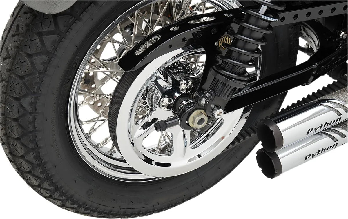 Präzisionsgeformte, verchromte Einsätze für die hintere Riemenscheibe. Passend zur OEM-Riemenscheibe. Passen auf die äußeren Bereiche des Riemenantriebsritzels.