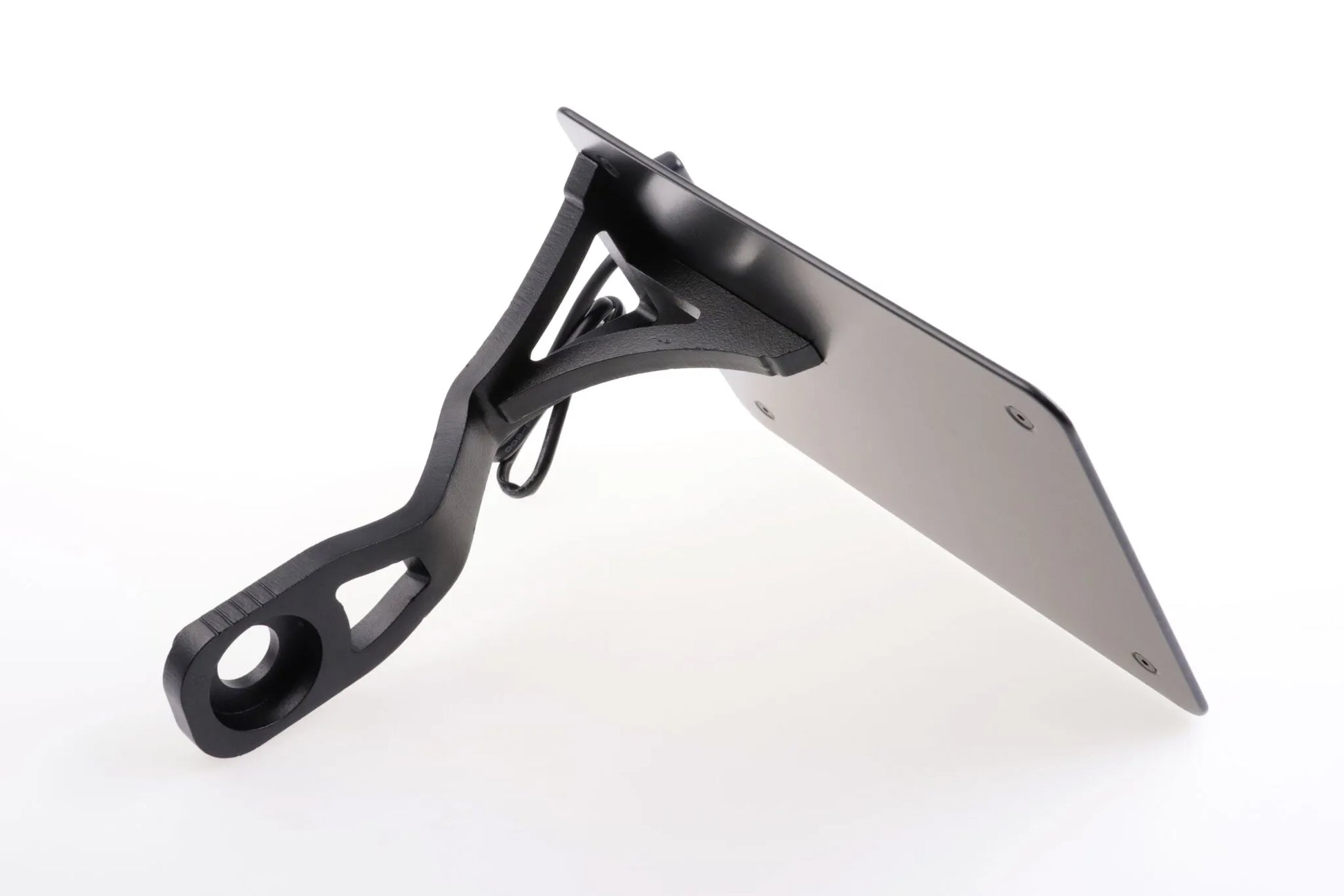 Dieser Kennzeichenhalter von Cult Werk ist aus hochwertigem Stahl gefertigt und garantiert so Langlebigkeit und Witterungsbeständigkeit. Die CNC-gelaserte Konstruktion sorgt für präzise Passform, und die schwarze Pulverbeschichtung verleiht ihm einen eleganten, individuellen Look. Die integrierte LED-Kennzeichenbeleuchtung ist E-geprüft und gewährleistet somit die Einhaltung der Vorschriften sowie verbesserte Sichtbarkeit, insbesondere bei schlechten Lichtverhältnissen. Der Kennzeichenhalter ist einfach zu montieren, robust und langlebig und vereint Form und Funktion perfekt. Verbessern Sie die Optik und Sicherheit Ihres Motorrads mit diesem Premium-Zubehör. Seine Abmessungen sorgen für ein schlankes, unauffälliges Design bei gleichzeitig optimaler Sichtbarkeit.Funktionen und Highlights