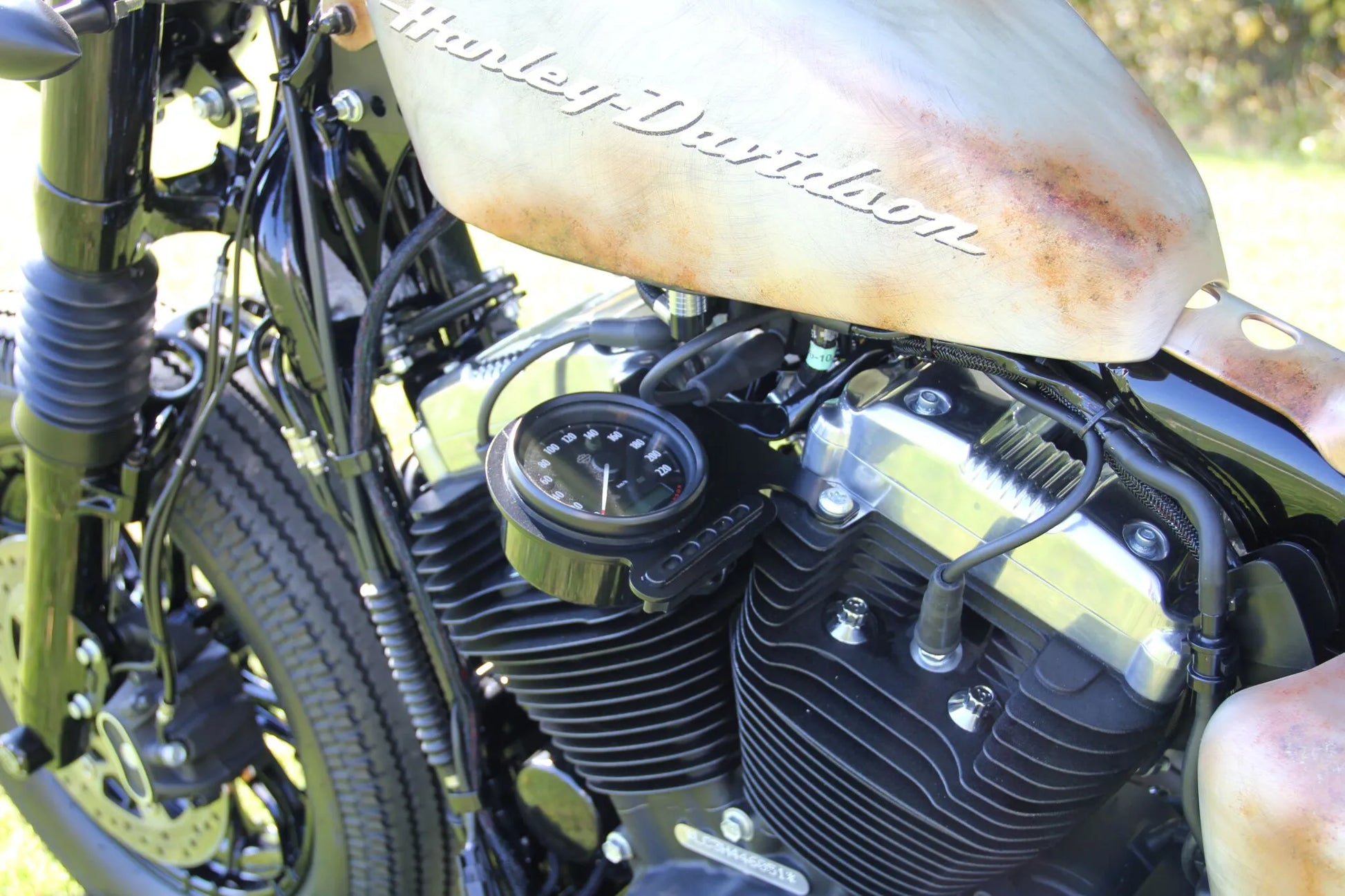 - Verlegt den Tachometer vom Lenker auf die linke Seite des Tanks für einen individuellen Look.