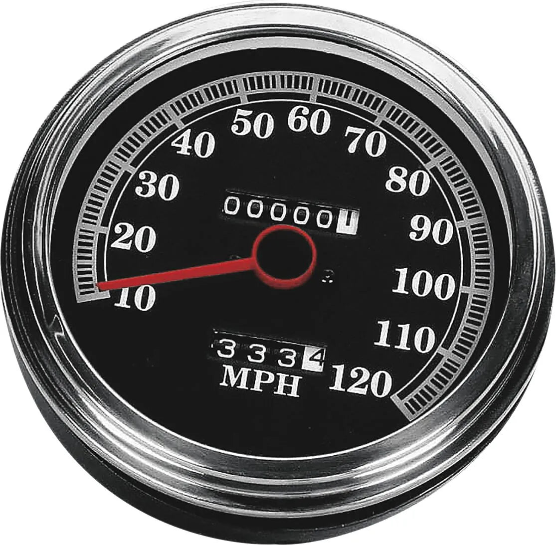 Der Drag Specialties 5" FL-Style Tachometer liefert präzise und zuverlässige Geschwindigkeitsanzeigen für Ihr Motorrad. Mit seinem klassischen schwarzen Zifferblatt und einem Außendurchmesser von 5 Zoll fügt er sich nahtlos in den Vintage-Stil der FL-Modelle von 1947 bis 1967 und anderer Custom-Bikes ein. Kalibriert von 0 km/h bis 193 km/h, bietet er einen großen Messbereich für unterschiedlichste Fahrbedingungen. Sein mechanischer Antrieb garantiert Zuverlässigkeit, während der integrierte Rückstellknopf die bequeme Kilometererfassung ermöglicht. Rüsten Sie die Instrumentierung Ihres Motorrads mit diesem hochwertigen, einfach zu montierenden Tachometer auf – perfekt für Motorradbegeisterte und Profis gleichermaßen. Der 12-mm-Gewindeanschluss sorgt für einen sicheren Sitz.