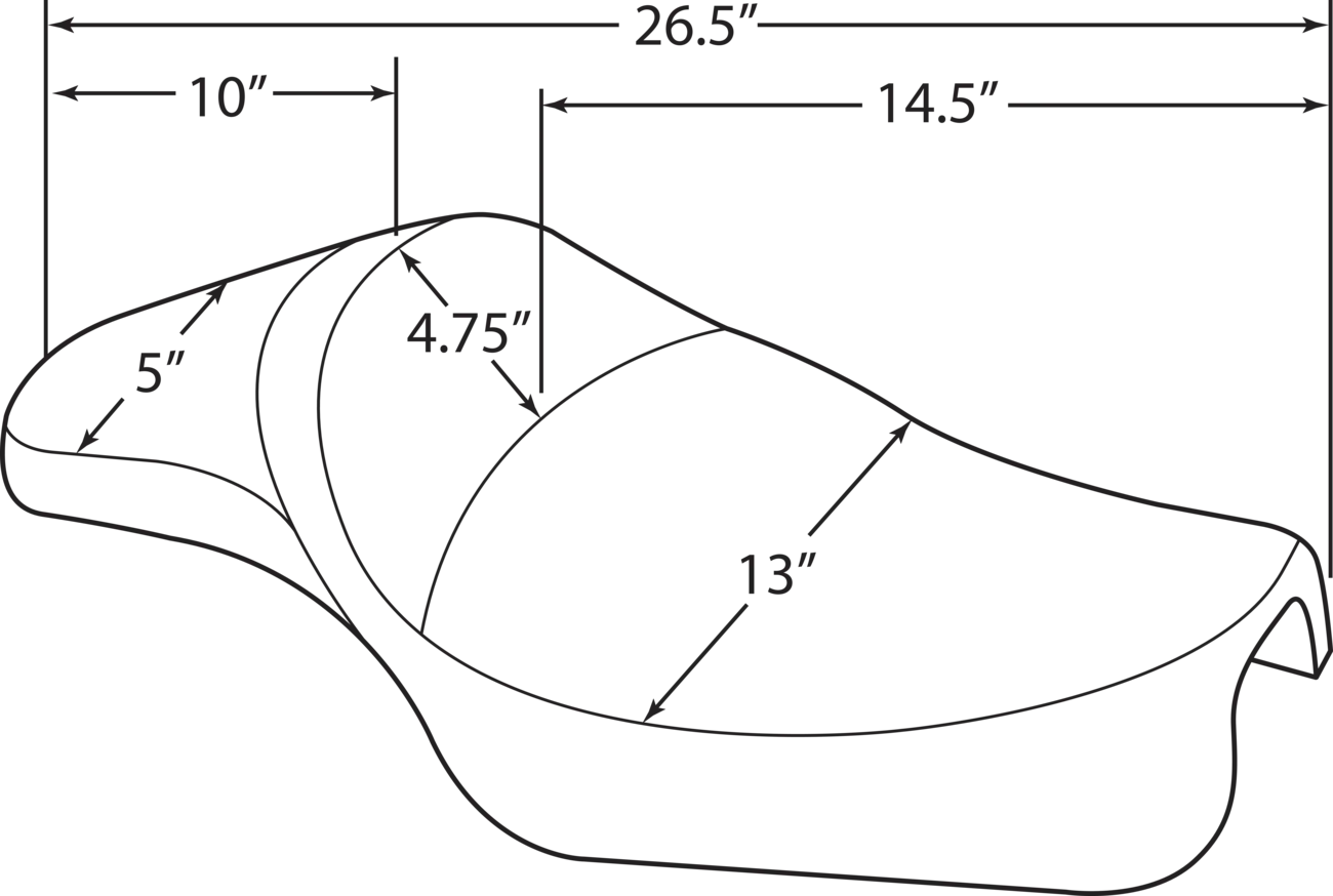 Dieser verlängerte Solositz positioniert den Fahrer weiter hinten und bietet so 11,4 cm zusätzliche Beinfreiheit im Vergleich zum Seriensitz. Die genauen Maße können je nach Motorradmodell leicht variieren. Der Sitz ist mit einem hochwertigen Vinylbezug in Automobilqualität gefertigt und vereint Langlebigkeit mit einer eleganten Optik. Der geformte, flexible Urethanschaum sorgt für maximalen Komfort, auch auf langen Fahrten. Die 4,76 mm starke, thermogeformte ABS-Sitzbank verfügt über eine vollständig mit Teppich bezogene Unterseite zum Schutz des Motorradlacks. Die Montage ist unkompliziert, da alle benötigten Befestigungsmaterialien im Lieferumfang enthalten sind. Der Drag Specialties Extended Reach Predator Solositz wird mit Stolz in den USA hergestellt und vereint Komfort, Qualität und verbesserte Ergonomie für anspruchsvolle Fahrer.