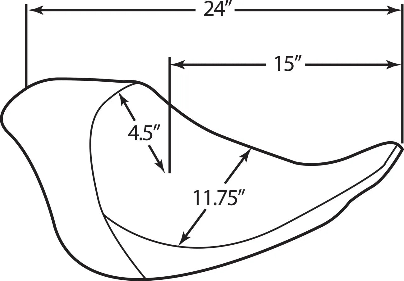 Der Drag Specialties EZ-ON Mount Solo-Sitz bietet ein benutzerfreundliches Montagesystem für werkzeugloses Anbringen und Abnehmen. Der Sitz verdeckt geschickt die Kotflügelbolzen und sorgt so für eine cleane, flache Optik. Die geformte Polyurethanschaum-Innenausstattung garantiert maximalen Komfort, auch auf langen Fahrten. Die 4,76 mm (3/16 Zoll) starke, thermogeformte ABS-Sitzbasis gewährleistet eine präzise Passform und senkt den Fahrer – je nach Modell – um bis zu 2,54 cm (1 Zoll) im Vergleich zum Seriensitz. Gefertigt aus hochwertigen Materialien und mit viel Liebe zum Detail, vereint dieser Solo-Sitz Stil und ein verbessertes Fahrgefühl. Werten Sie das Erscheinungsbild und das Fahrgefühl Ihres Motorrads mit dem Drag Specialties EZ-ON Mount Solo-Sitz auf.