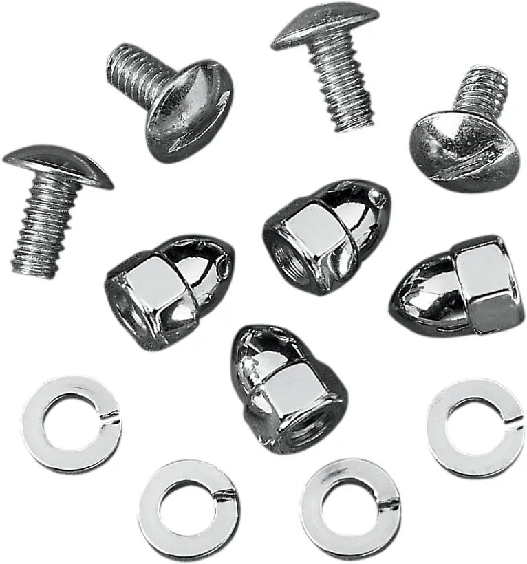 Das Drag Specialties Kennzeichen-Befestigungsset mit Hutmuttern bietet eine stilvolle und sichere Lösung zur Befestigung Ihres Motorradkennzeichens. Jedes Set enthält vier Schrauben und passende Hutmuttern für ein harmonisches und professionelles Erscheinungsbild. Diese Komponenten eignen sich ideal zum Ersetzen verschlissener oder beschädigter Teile und gewährleisten die sichere und vorschriftsmäßige Befestigung Ihres Kennzeichens. Hergestellt in den USA, zeichnet sich dieses Kennzeichen-Befestigungsset durch hervorragende Qualität und Langlebigkeit aus und bietet jahrelange zuverlässige Funktion. Werten Sie die Optik Ihres Motorrads mit diesem einfach zu montierenden und optisch ansprechenden Upgrade auf – und entscheiden Sie sich für ein Produkt, das auf Langlebigkeit ausgelegt ist.