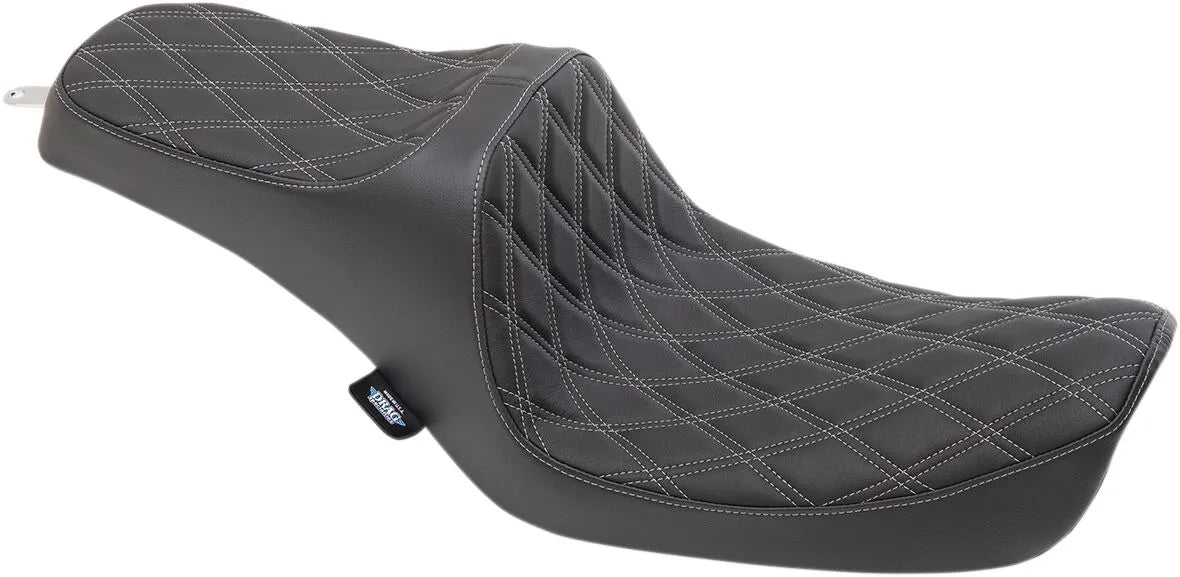 Der Drag Specialties Predator III Sitz vereint optimalen Komfort mit einer eleganten Optik. Der einteilige Sitz mit hochwertigem Vinylbezug bietet Langlebigkeit und ein erstklassiges Fahrgefühl. Der geformte Polyurethanschaum sorgt für ein komfortables Fahrgefühl, während das schmale Design vorne für mehr Beinfreiheit sorgt. Die 4,76 mm starke, thermogeformte ABS-Sitzbank garantiert perfekten Sitz und ist mit einem Teppichboden und Gummipuffern ausgestattet, um den Lack Ihres Motorrads zu schützen. Der Predator III Sitz mit seiner silbernen Doppelrautensteppung wertet nicht nur die Optik Ihres Bikes auf, sondern bietet auch die nötige Unterstützung für lange Touren. Er ist mit allen Drag Specialties und den meisten Harley-Davidson Sissybars kompatibel und somit ein vielseitiges Upgrade für Ihr Motorrad. Hergestellt in den USA, steht dieser Sitz für hochwertige Verarbeitung und Liebe zum Detail. Der Drag Specialties Predator III Sitz ist ein großartiges Upgrade und bietet dem Fahrer hohen Komfort und Stil.
