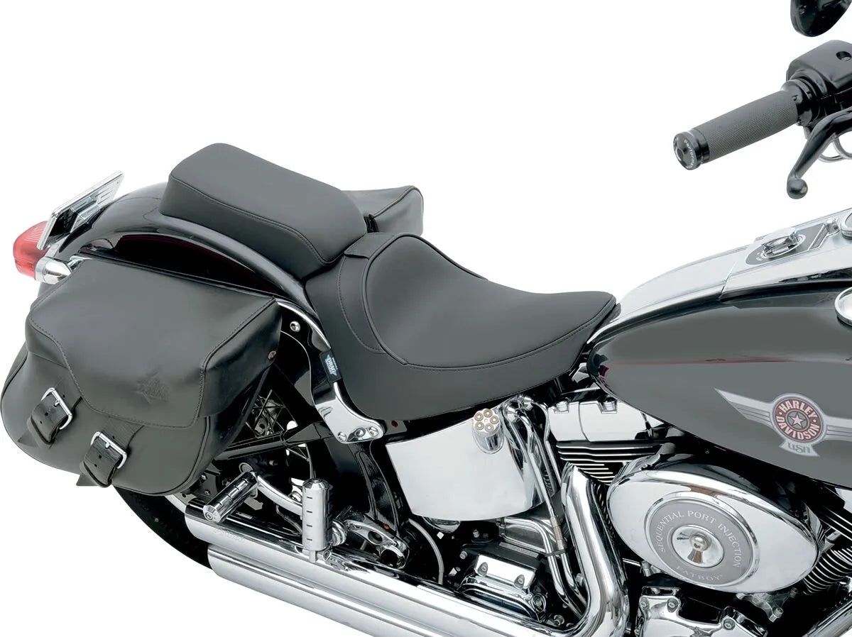Der Drag Specialties Solo-Sitz mit Rückenlehnenkompatibilität vereint hochwertige Materialien und innovatives Design für überragenden Komfort und optimale Performance. Dank des sonnenreflektierenden Leders im Sitzbereich und des hochwertigen Vinyls an den Seiten bleibt Ihr Motorrad angenehm kühl, da die Oberflächentemperatur um bis zu 14 °C gesenkt wird. So genießen Sie auch bei hohen Temperaturen ein komfortableres Fahrgefühl. Die flexible Urethanschaum-Innenausstattung sorgt für maximalen Komfort, während die 4,76 mm starke, thermogeformte ABS-Sitzbasis mit Teppichboden den Lack Ihres Motorrads schützt. Dieser Solo-Sitz verbessert nicht nur Ihr Fahrerlebnis, sondern verleiht Ihrem Bike auch einen Hauch von Stil. Im Vergleich zum Seriensitz liegt der Fahrer mit diesem Sitz 12,7 mm tiefer.