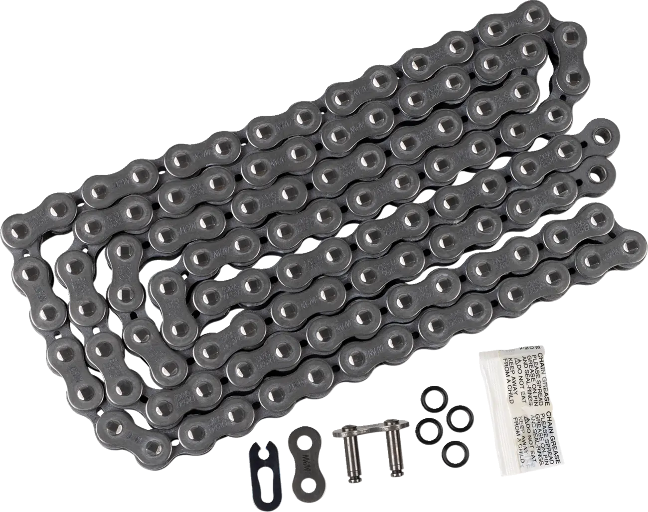 Die EK 520 SRX2 Kette verfügt über Aussparungen zur Gewichtsreduzierung ohne Einbußen bei der Festigkeit. Ihr innovatives Quadra-X-Ring-Design reduziert die Reibung deutlich und verlängert die Lebensdauer der Kette im Vergleich zu Standard-O-Ring-Ketten um das 1,5- bis 2-Fache. Das bedeutet weniger Wartungsaufwand und mehr Fahrspaß. Die 520er Kette eignet sich sowohl für Offroad- als auch für Straßeneinsätze und ist für Motorräder bis 650 cm³ (Offroad) bzw. 750 cm³ (Straße) geeignet. Mit einer Zugfestigkeit von 37,8 kN (8500 lb) gewährleistet die EK 520 SRX2 Kette zuverlässige Leistung auch unter anspruchsvollen Bedingungen. Diese Stahlkette ist das perfekte Upgrade oder der ideale Ersatz für den Antriebsstrang Ihres Motorrads.