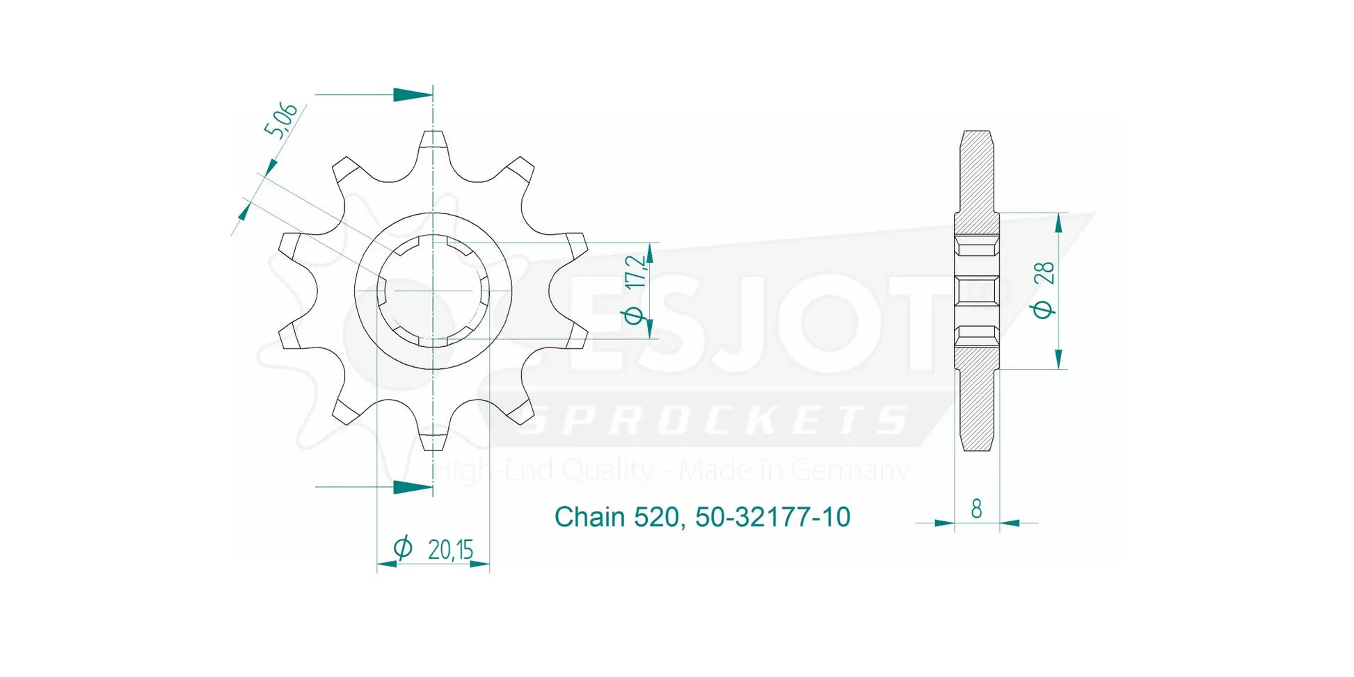 Die in Deutschland gefertigten Esjot-Ritzel werden auf modernsten CNC-Drehmaschinen präzisionsbearbeitet. Dies garantiert höchste Genauigkeit und Präzision. Modernste Räumtechniken gewährleisten einen exakten Sitz auf der Antriebswelle, minimieren den Verschleiß und maximieren die Kraftübertragung. Die Verwendung von Spezialstahl in Kombination mit einer hochwertigen Einsatzhärtung sorgt für erhöhte Verschleißfestigkeit und verlängert die Lebensdauer des Ritzels. Mit Rundlauftoleranzen von unter 0,1 mm bietet dieses 520er-Ritzel einen ruhigen und zuverlässigen Lauf. Entscheiden Sie sich für Esjot – für höchste Qualität und Langlebigkeit.