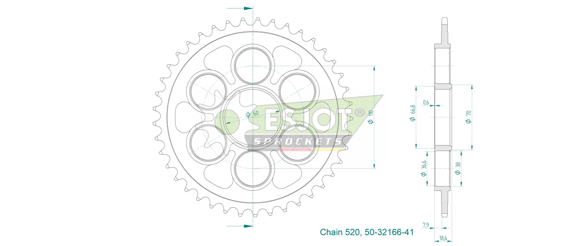 Esjot 520 Kettenrad hinten – Hochwertiger Stahl