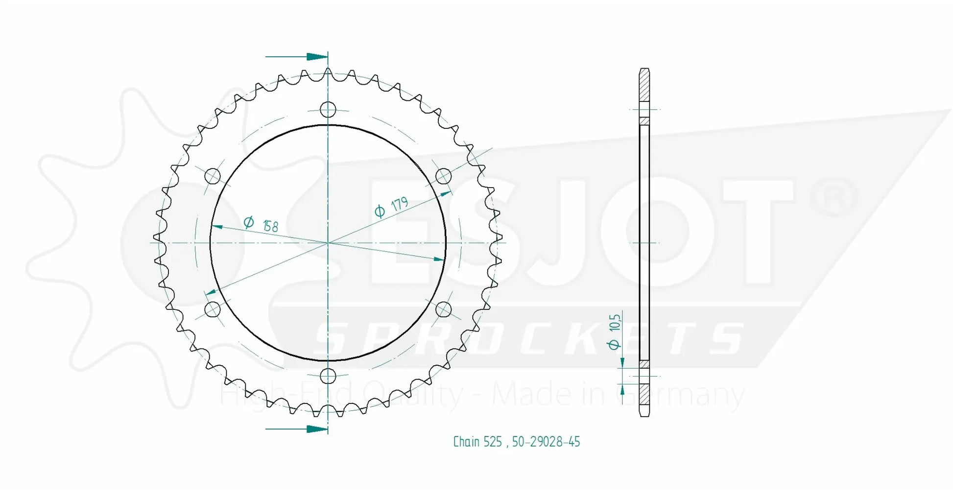 Esjot 525 Kettenrad hinten – Hochwertiger Stahl