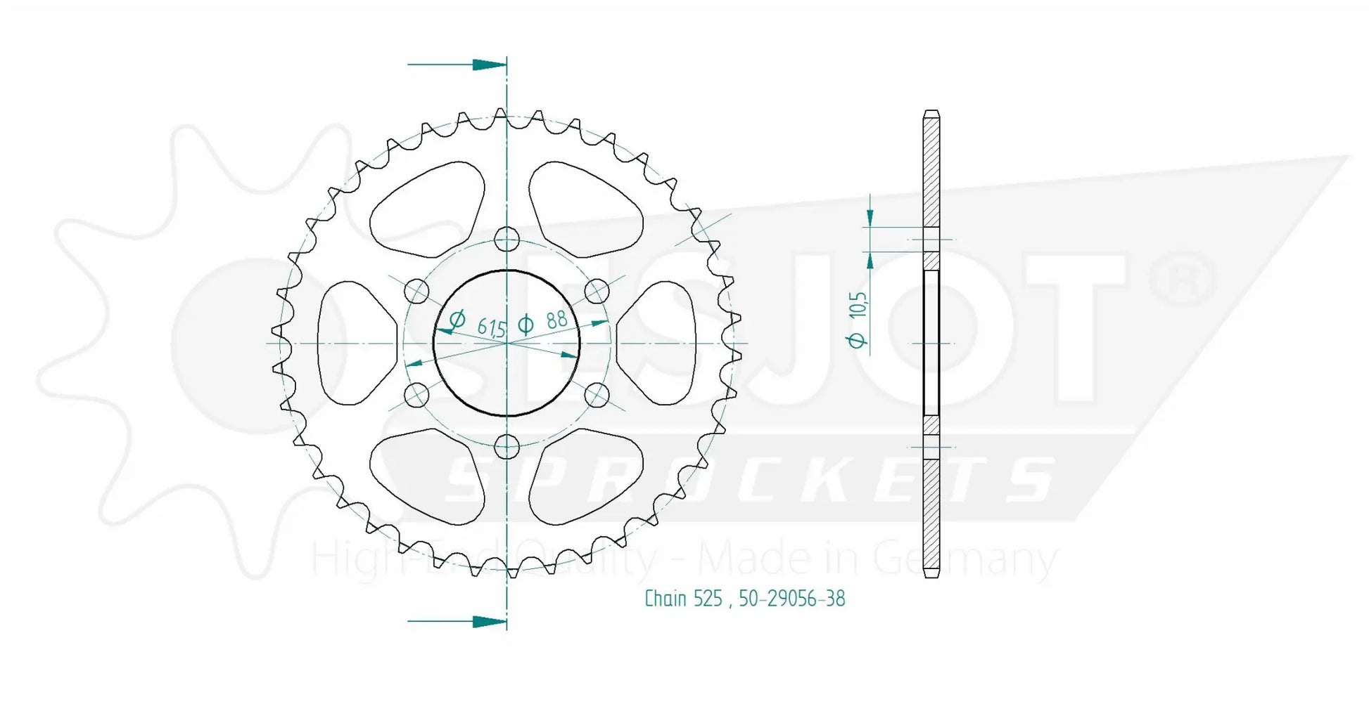 Das Esjot 525 Kettenrad wird aus hochfestem QSTE460-Stahl gefertigt und mit einer speziellen Oberflächenbehandlung für erhöhte Verschleißfestigkeit versehen. Dank des fortschrittlichen Diamond Cut 2.0-Verfahrens ist die Verzahnung präzise konstruiert, um einen reibungslosen Ketteneingriff und minimalen Verschleiß selbst unter härtesten Bedingungen zu gewährleisten. Mit Rundlauf- und Axialabweichungstoleranzen von unter 0,1 mm sorgt dieses Kettenrad für optimale Kraftübertragung und reduzierte Vibrationen. Ob erfahrener Profi oder ambitionierter Motorradfahrer – das Esjot Kettenrad ist die perfekte Wahl, um die Leistung Ihres Motorrads zu maximieren. Stolz hergestellt in Deutschland, können Sie sich auf seine überlegene Qualität und Zuverlässigkeit verlassen. Steigen Sie auf Esjot um und erleben Sie den Unterschied!