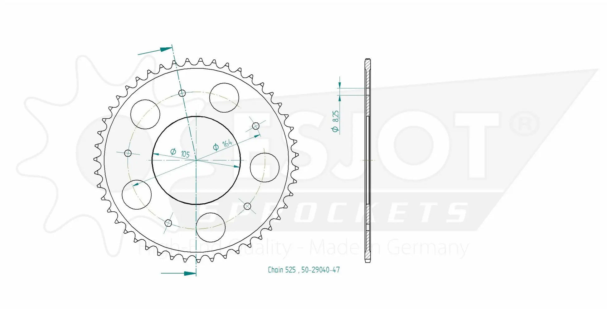 Esjot 525 Kettenrad - Hinteres Stahlkettenrad