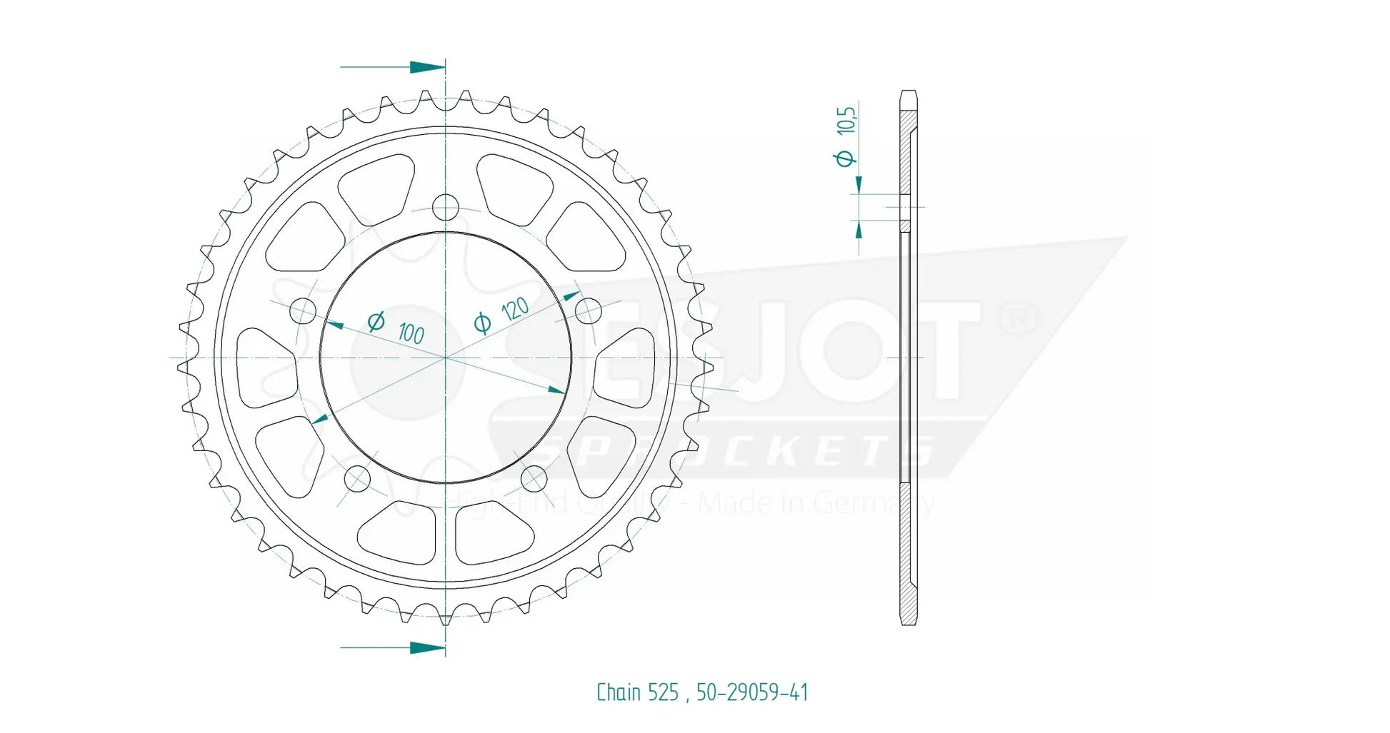 Das Esjot Standard-Kettenrad 525 hinten erfüllt die strengen Anforderungen der Erstausrüsternormen und ist daher weltweit die erste Wahl für Motorradbegeisterte. Dieses Kettenrad bietet außergewöhnliche Qualität und Langlebigkeit und gewährleistet zuverlässige Leistung unter verschiedensten Fahrbedingungen. Erleben Sie den Unterschied deutscher Ingenieurskunst mit Esjot.