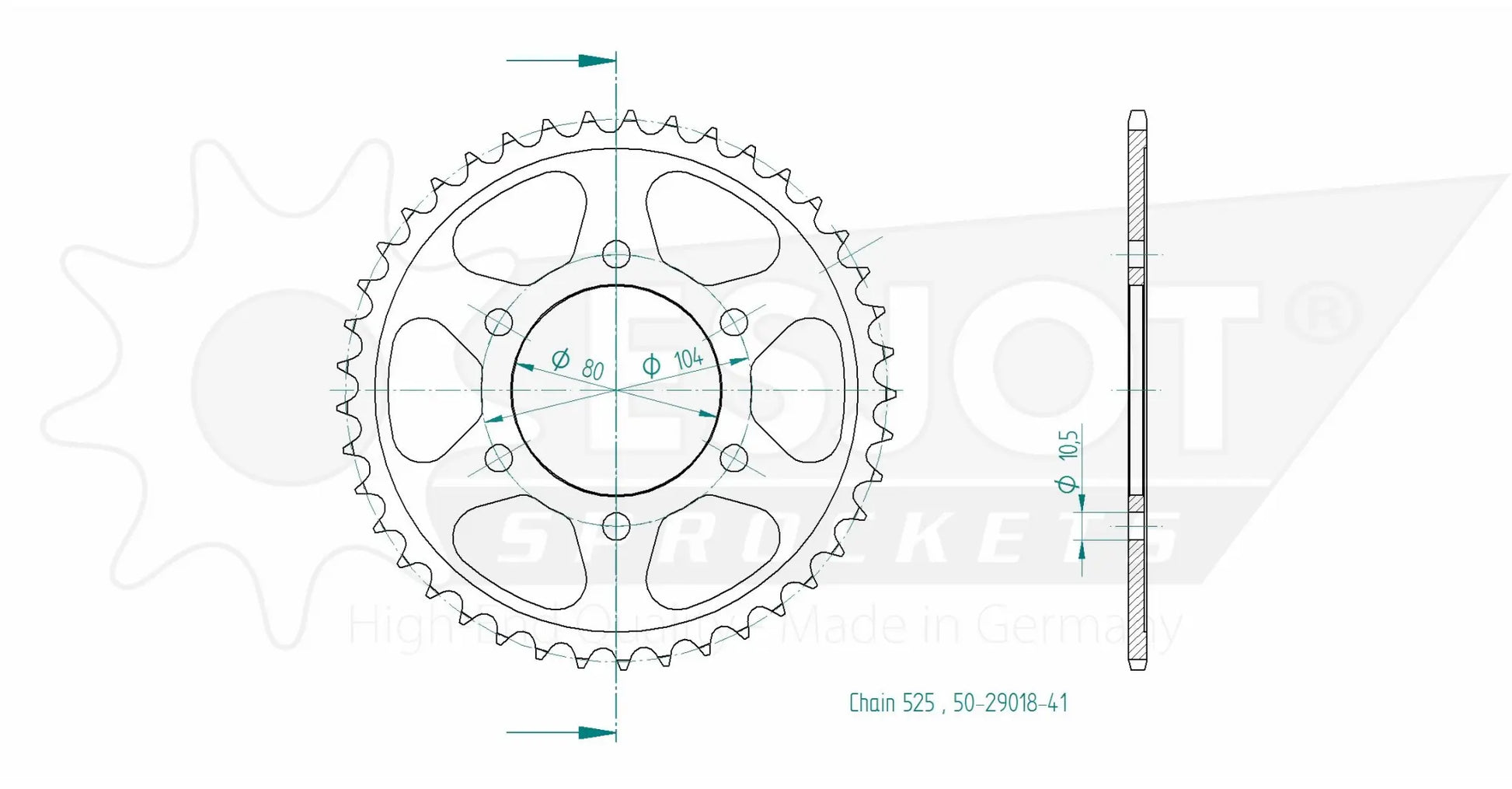 Esjot-Kettenräder werden aus hochfestem QSTE460-Stahl gefertigt, der für seine außergewöhnliche Belastbarkeit und Verschleißfestigkeit bekannt ist. Das fortschrittliche Diamond Cut 2.0-Verfahren garantiert präzise Verzahnung, minimiert die Reibung und maximiert die Kraftübertragung. Eine spezielle Oberflächenbehandlung verbessert die Korrosions- und Verschleißbeständigkeit des Kettenrads zusätzlich und gewährleistet so eine lange Lebensdauer. Mit Rundlauftoleranzen von weniger als 0,1 mm bietet dieses Kettenrad einen ruhigen und zuverlässigen Lauf. Das 41-Zahn-Kettenrad sorgt für gleichbleibende Leistung an Ihrem Motorrad.